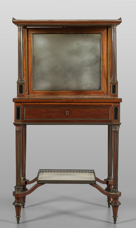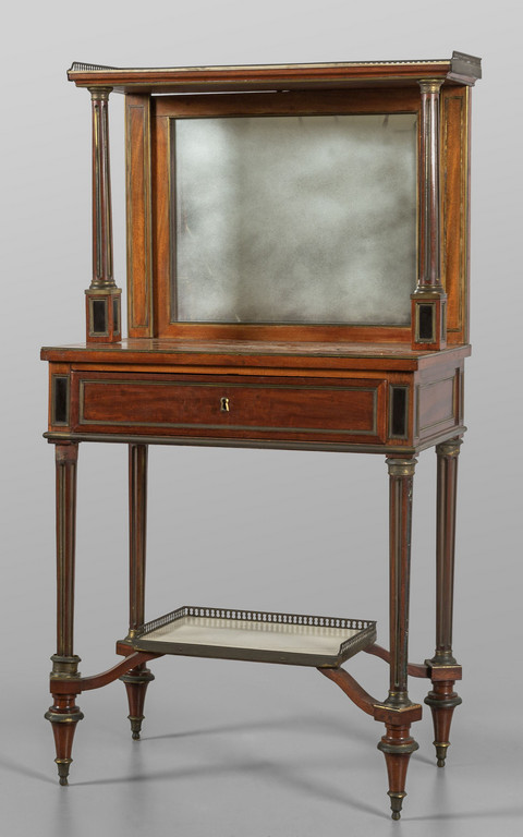 Tavolino con alzata ad un cassetto in mogano gambe raccordate da pianetto Inghilterra sec.XIX