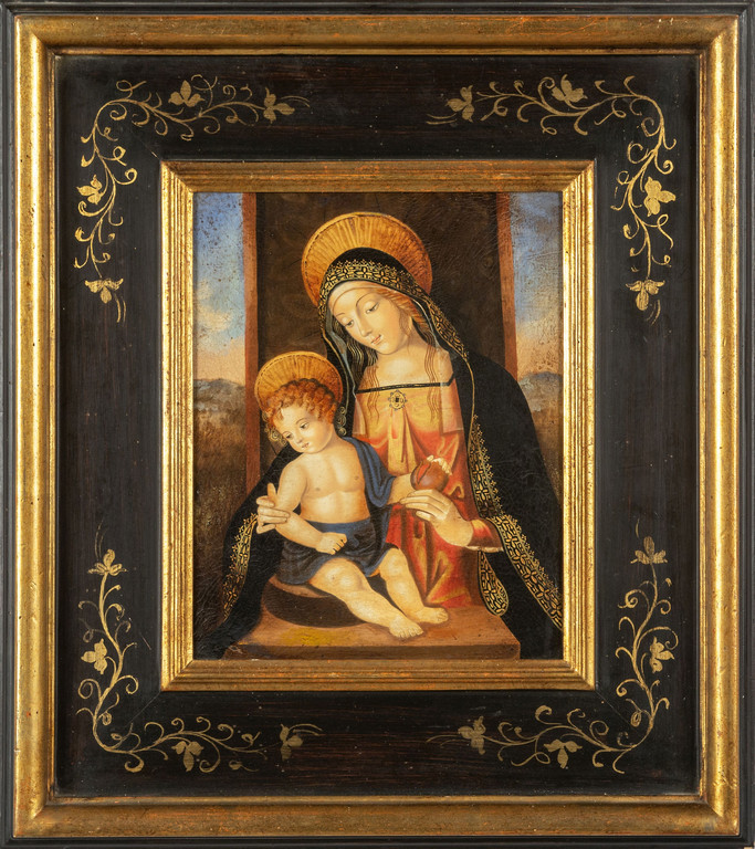 Previous Lot 1163 Next Aste Boetto - Via Mura dello Zerbino 10R, 16122 Genova ASTA DI ANTIQUARIATO Asta di Antiquariato Thursday 22 June 2023 hours 10:00 (UTC +01:00) DIPINTO 'Madonna con Bambino' olio sec.XX cornice in legno ebanizzato e dorato