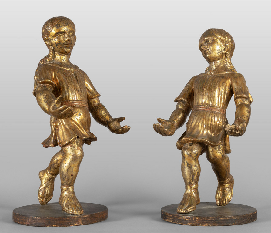 Coppia di servitori in legno intagliato e dorato a mecca sec.XVIII