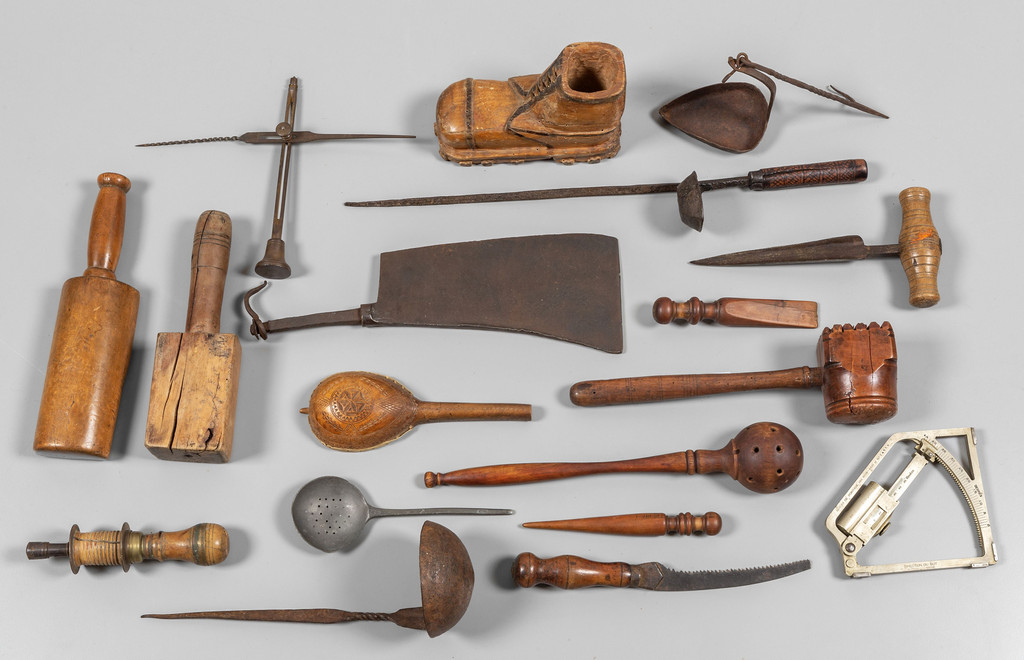 Scatola magica contenente antichi oggetti di arte popolare in ferro e legno