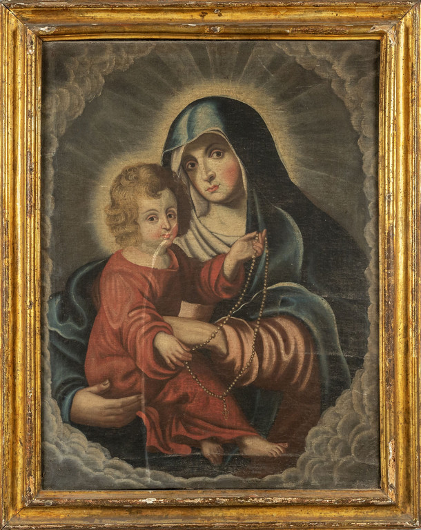 'Madonna con Bambino' olio cornice coeva in legno dorato a mecca sec.XVIII