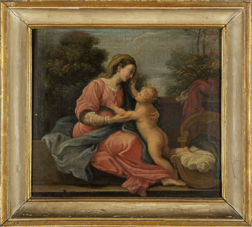 Scuola italiana fine sec.XVIII 'Madonna con Bambino' olio cornice antica in legno dorato e laccato