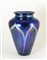VASO IN VETRO SOFFIATO IRIDESCENTE BLU - IRIDESCENT BLUE BLOWN GLASS VASE Louis Confort Tiffany, Favrile, inizio del XX secolo - beginning of 20th century con motivo di piume di pavone stilizzate h cm 25 Firma incisa sotto la base L. C. Tiffany - Favrile - Engraved signature under the base L. C. Tiffany - Favrile