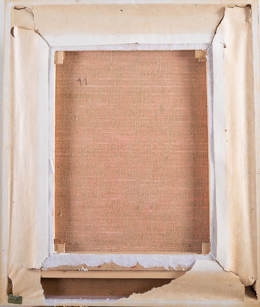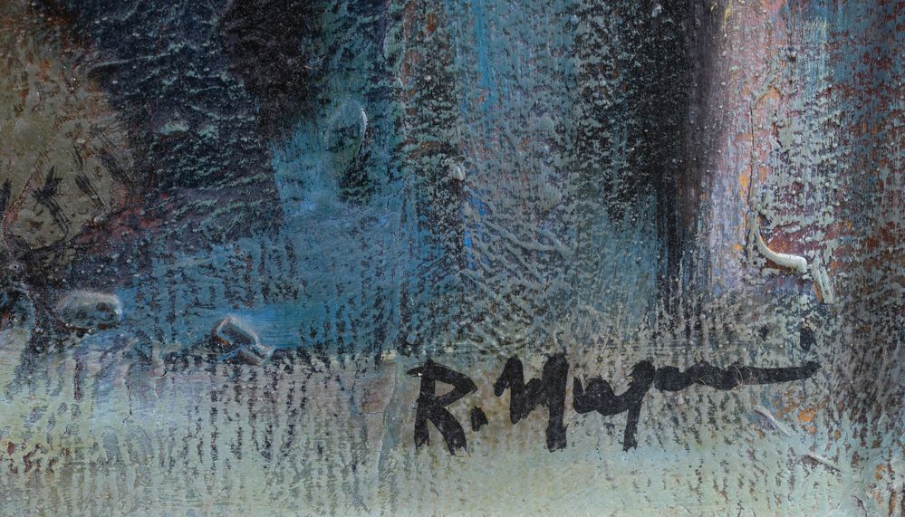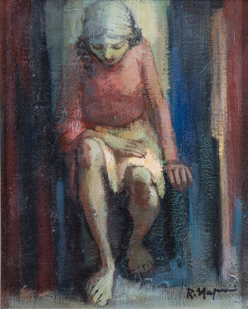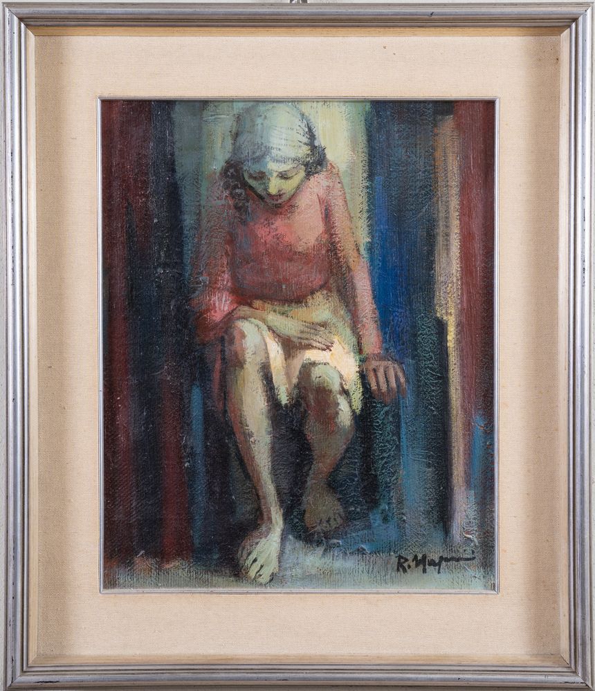 RENZO MAGNANINI (Gonzaga 1920 – Bentivoglio 2006) "Donna seduta". Olio su tela. Cm 50x40. Opera firmata in basso a destra R. Magnanini.