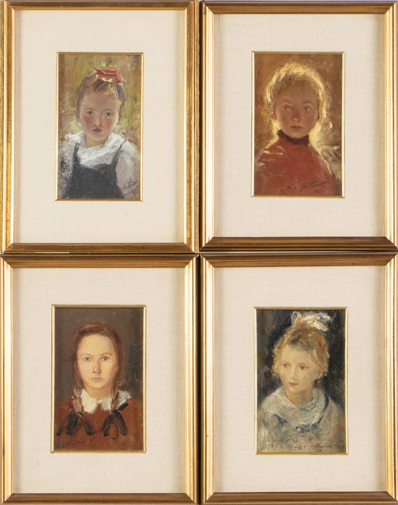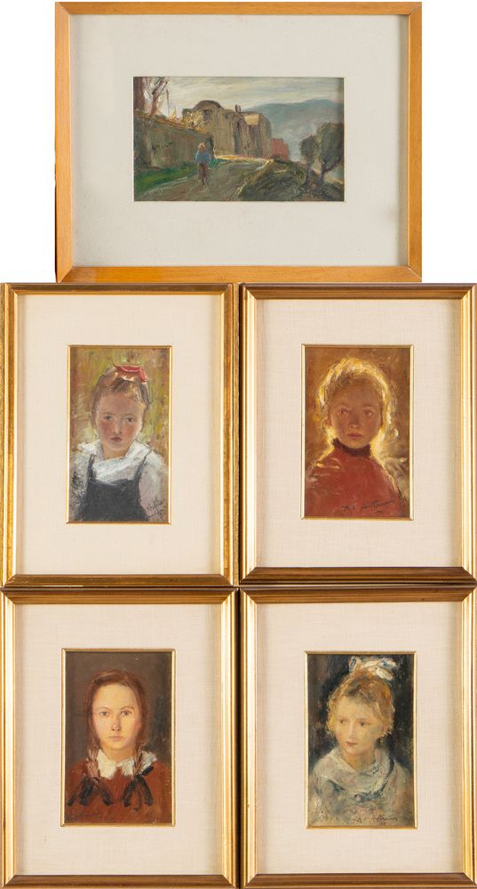 ARTUSI (XX secolo) Lotto composto da cinque tecniche miste su carta. Rispettivamente di cm 16x10; cm 16x10; cm 16x10 e cm 16x10; cm 9,5x16,5. Opere firmate in basso.