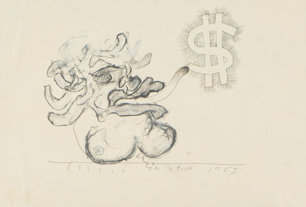 PIRRO CUNIBERTI (Sala Bolognese 1923 – Bologna 2016) "Senza titolo", 1965. Tecnica mista su carta. Cm 28,5x42. Opera firmata e datata in basso al centro Cuniberti 1965.