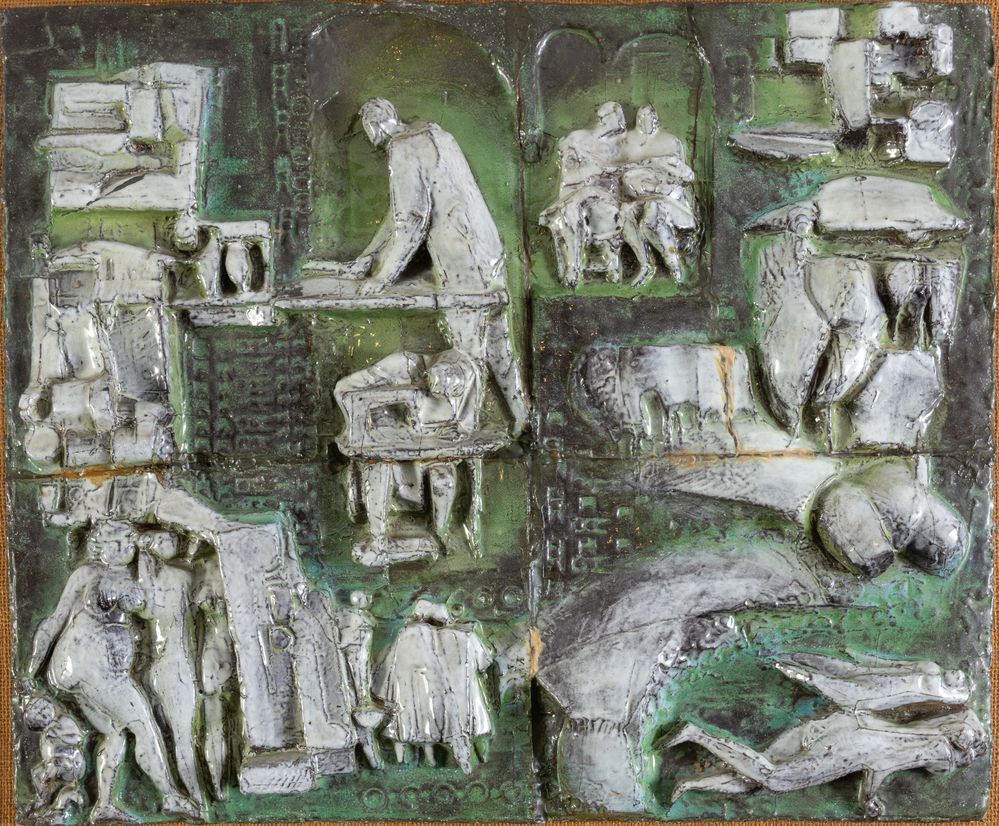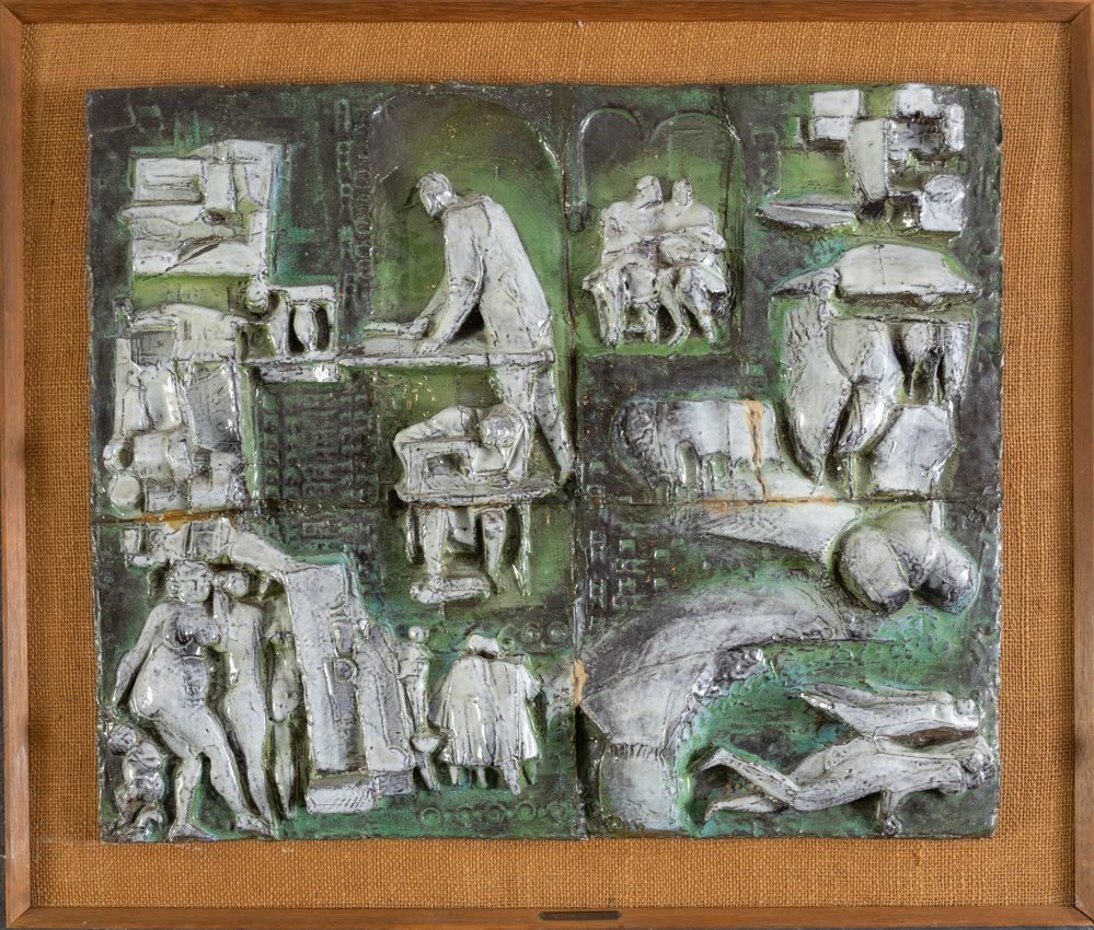 ANGELO BIANCINI (Castel Bolognese 1911 – 1988) Senza titolo,1970. Bassorilievo in ceramica policroma. Cm 57,5x67,5. Al retro opera firmata e datata A. Biancini 1970.