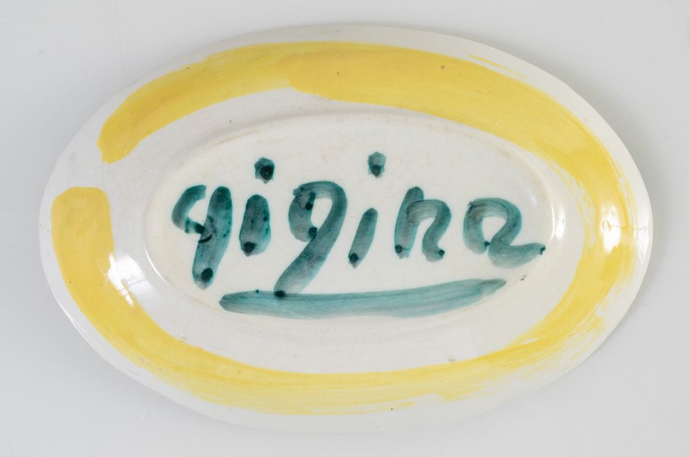 GIGLIOLA OLIVIERI BAJ (XX secolo) Lotto composto da due piatti in ceramica policroma. Rispettivamente di cm 3x24x16 e cm 2x ⌀ 23. Opere firmate al retro Gigina.