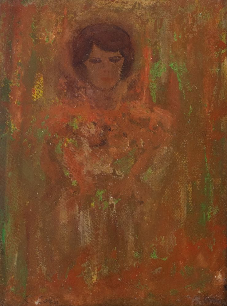 CARLO CORSI (Nizza 1879 – Bologna 1966) "Figura femminile". Tecnica mista su cartone. Cm 39x29,5. Opera firmata in basso a sinistra C. Corsi.