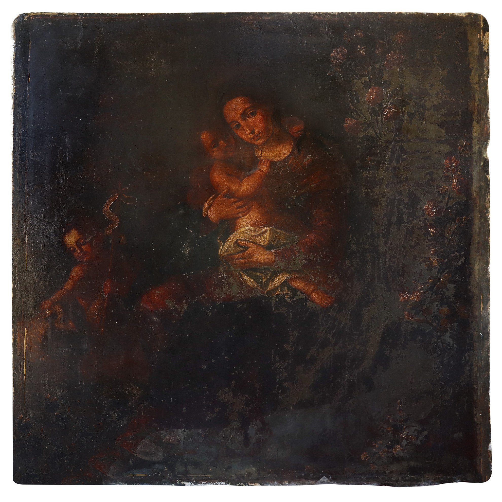 Giovanni Bernardino Azzolino (Cefalù 15712-Napoli 1645) - Madonna con Bambino e S.Giovannino, XVI Secolo cm 144 x148 Olio su ardesia Famiglie Maira di Palermo. Presente Experties del Prof. Strinati Claudio: