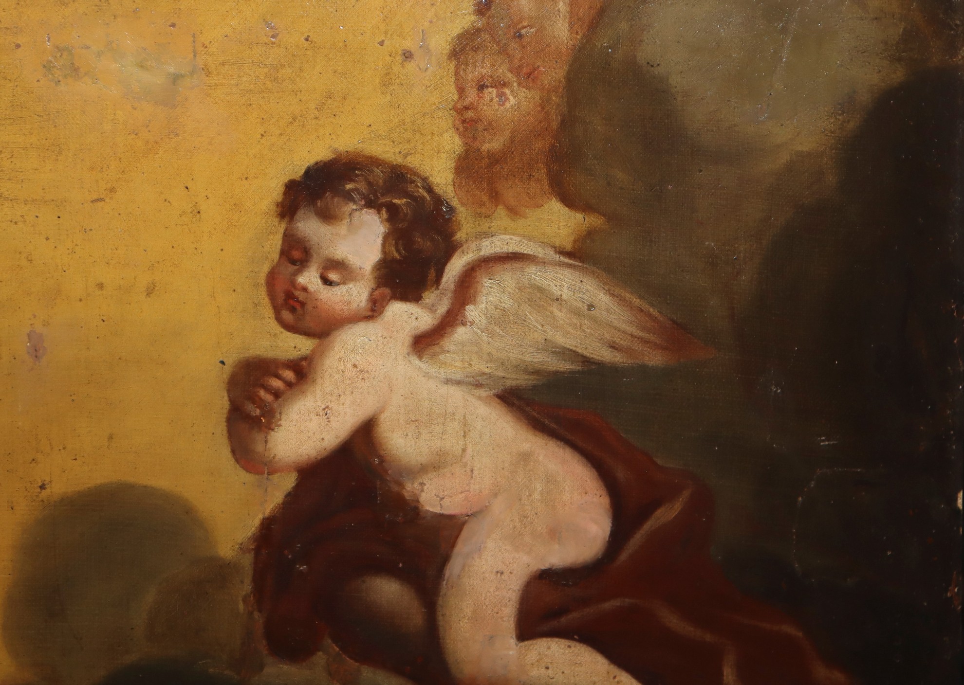 Morte di S. Francesco d'Assisi, Spanish school of the seventeen° Secolo. Cm 132 x 95 Olio su tela Scena sacra nella quale è presente la particolarità delle stigmate posizionate sui polsi anzichè sulle mani come di solito per tradizione. Stato di conservazione buono. Certificato della galleria Archeocity di Mario Liseni (Lorrach Germania)