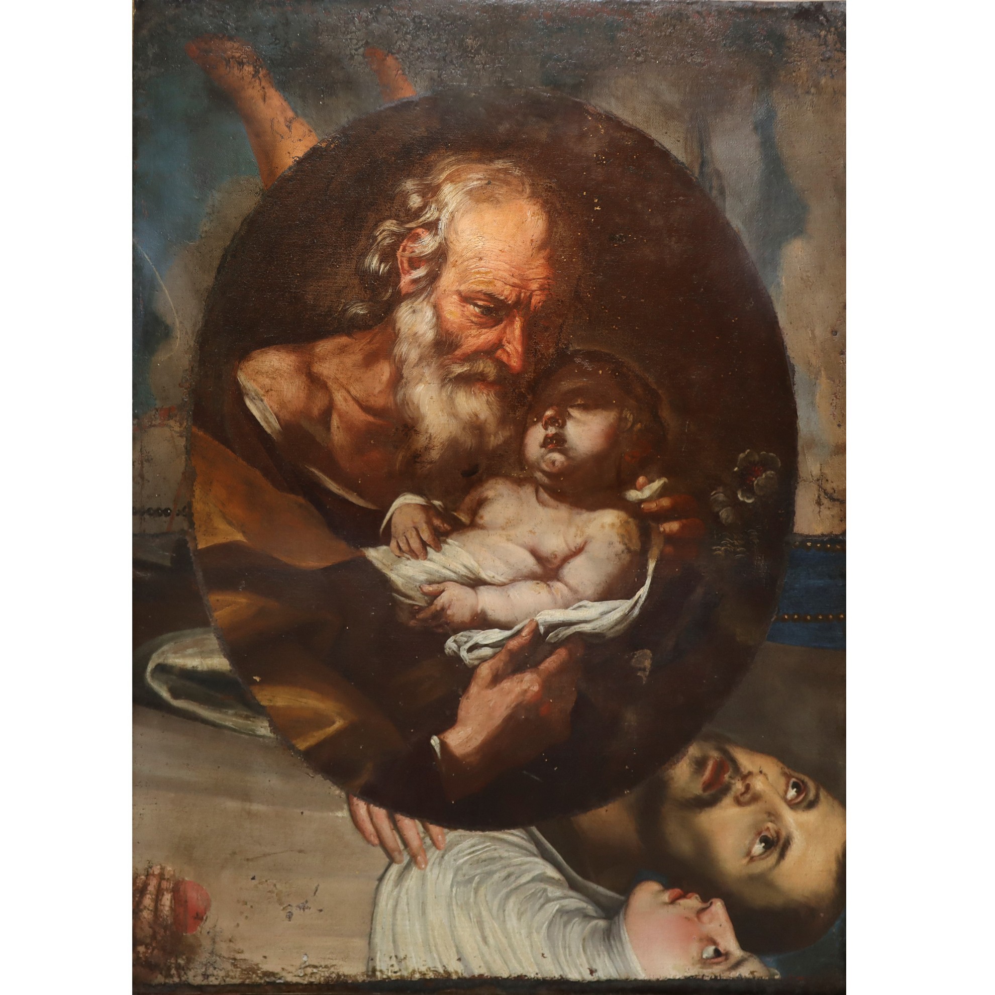 S.Giuseppe con Bambino, Painter of the seventeen° Secolo cm 100 x 73, in cornice cm 116 x 88 Olio su tela.