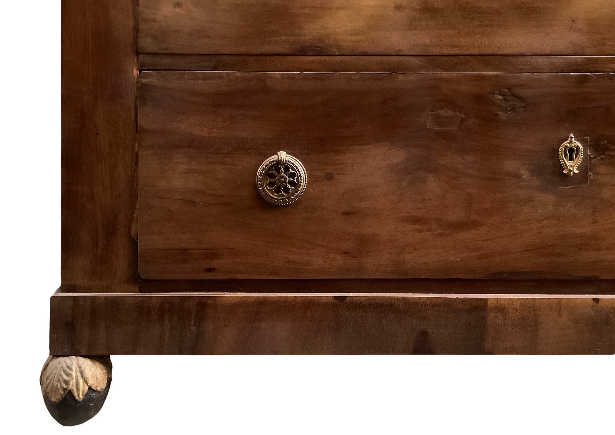 Chiffoniera in legno di noce, Directory End XVIII h 172 cm la 125 cm, L 50 cm Unico corpo, finale a cappello mezza canna, laccato nero ebanizzato nero. Colonnine in legno, particolari dorati, due sportelli nella parte superiore, e cassetti nella parte inferiore e nella parte terminale. Sicilia, ad uso femminile.