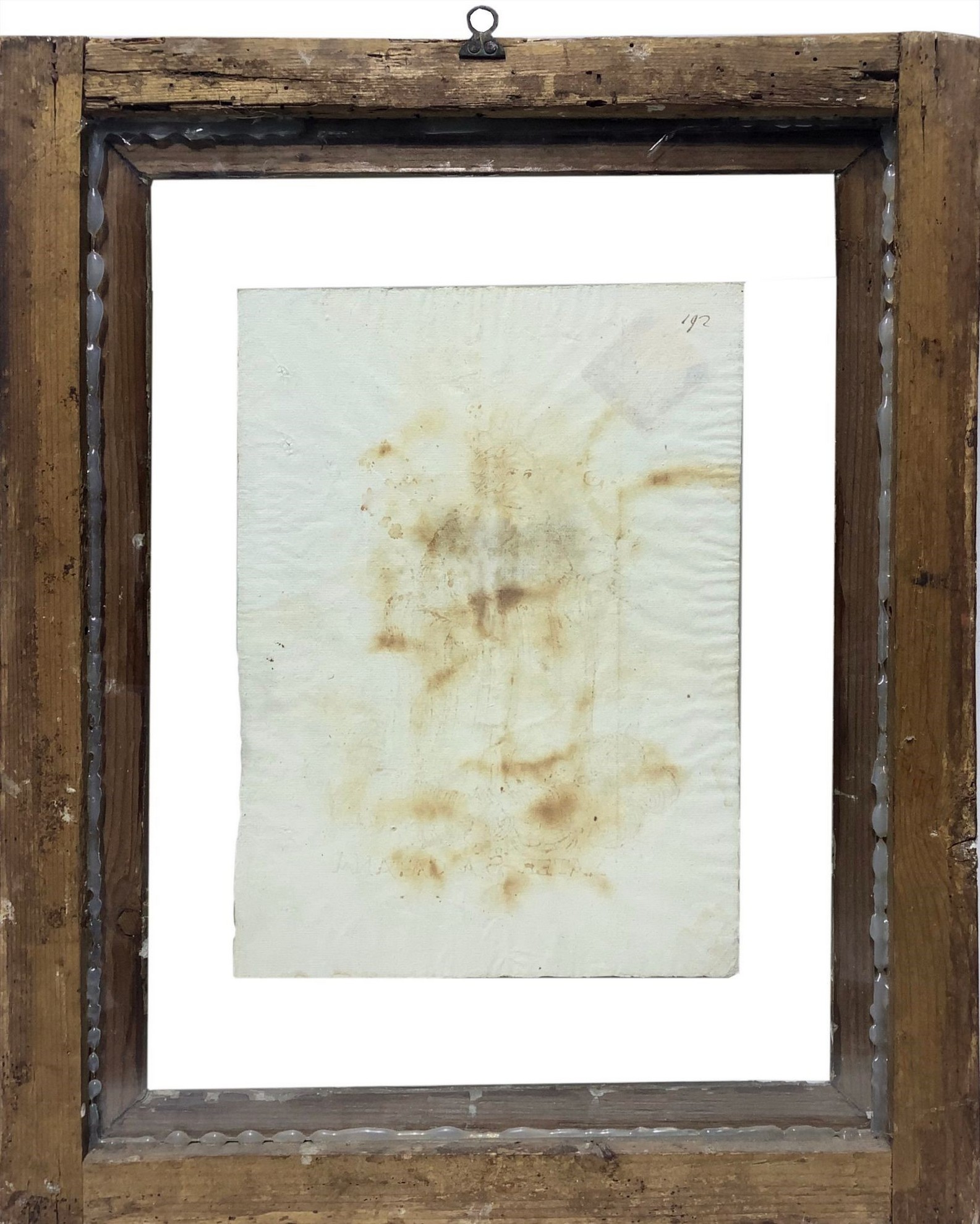 Cornice in foglia oro e Inchiostro brunaccio su carta vergellata raffigurante Sant’Agata., 1636 Cm 30x20,5. Cornice a mezza canna siciliana cm 50x40. Firmato Mater S.A Catania e datata 1636.Firmato Mater S.A Catania e datata 1636.