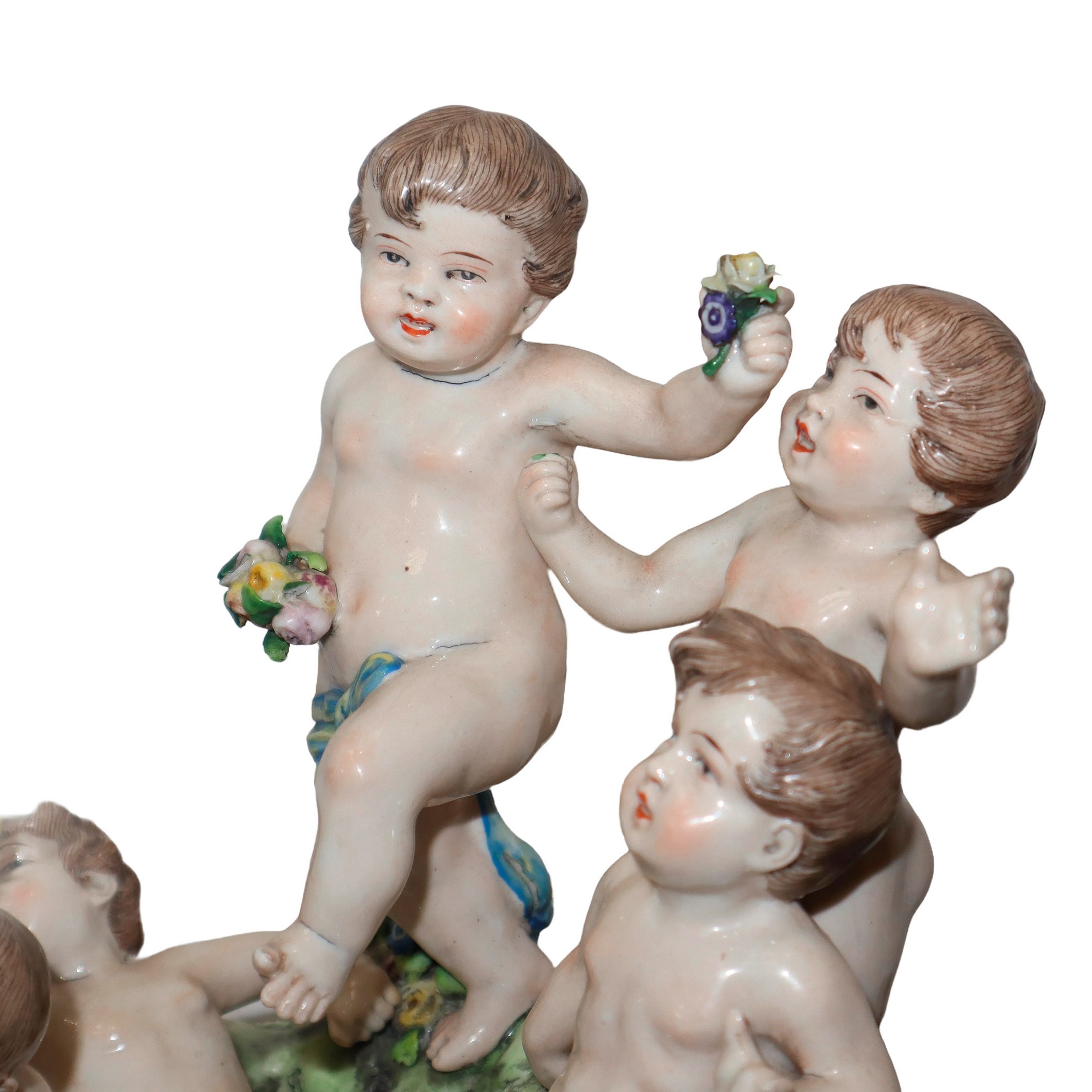 Capodimonte - Statuina in porcelllana con 5 puttini h cm 26 x 28 x 23 porcellana Marchio della manifattura alla base
