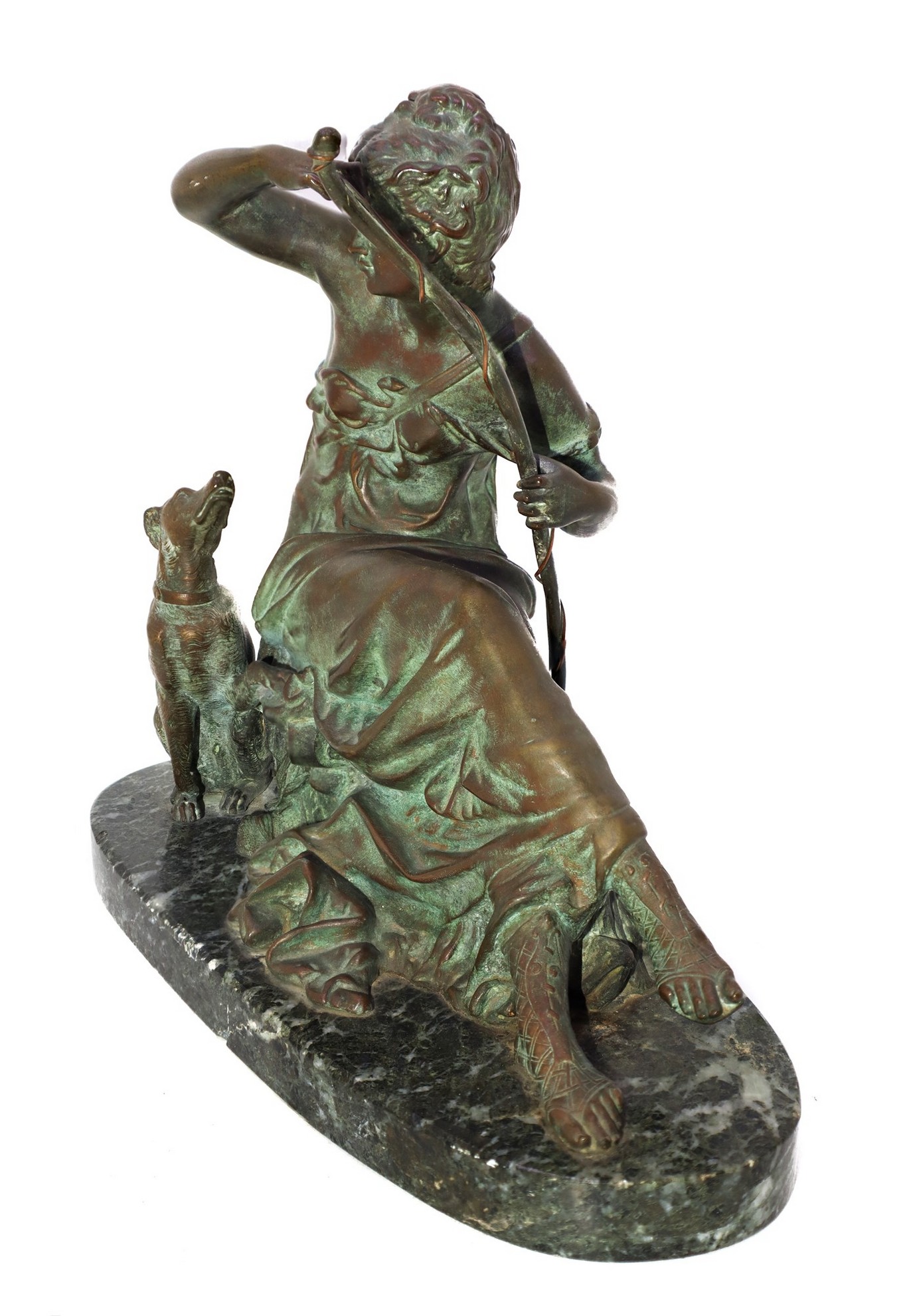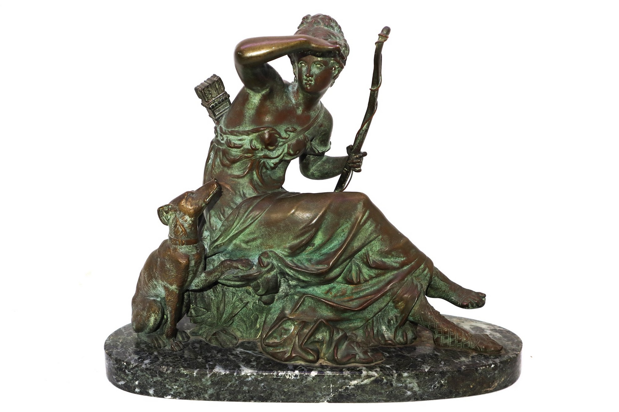 Richard Aurili (1834-1914) - Scultura raffigurante Diana con cane, 19° Secolo