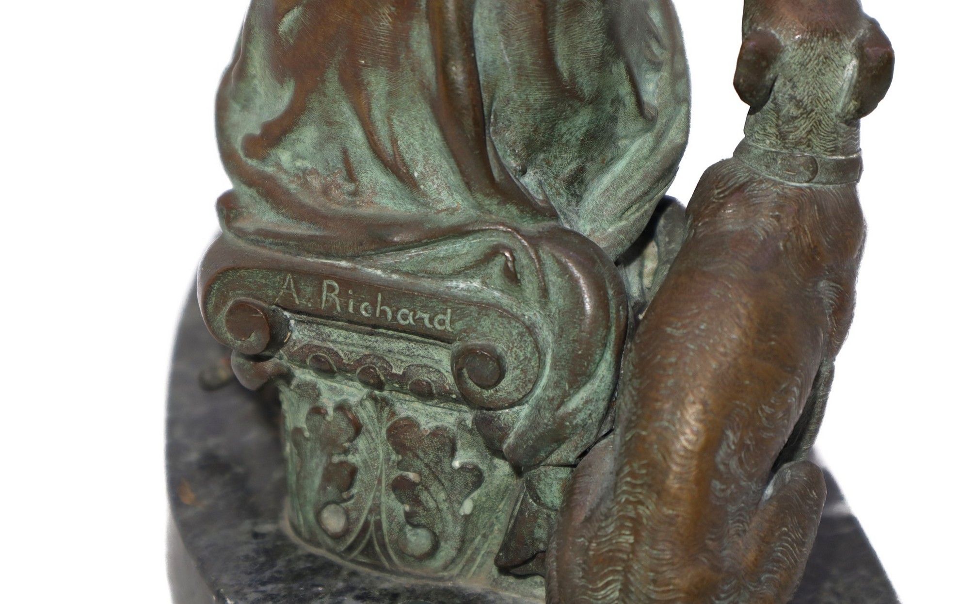 Richard Aurili (1834-1914) - Scultura raffigurante Diana con cane, 19° Secolo h cm 23; base ovale cm 27 Firmata sul retro.Firmata sul retro.