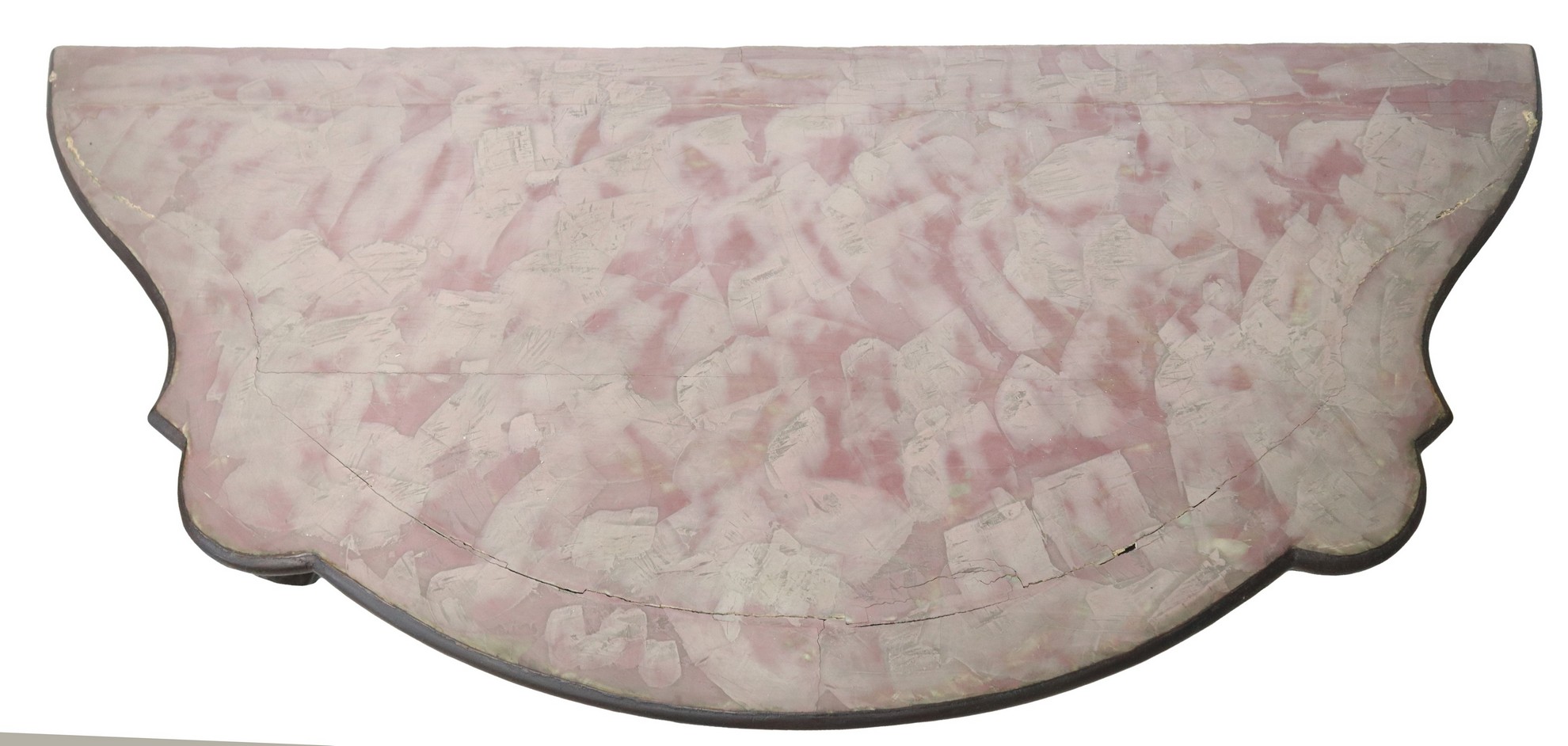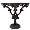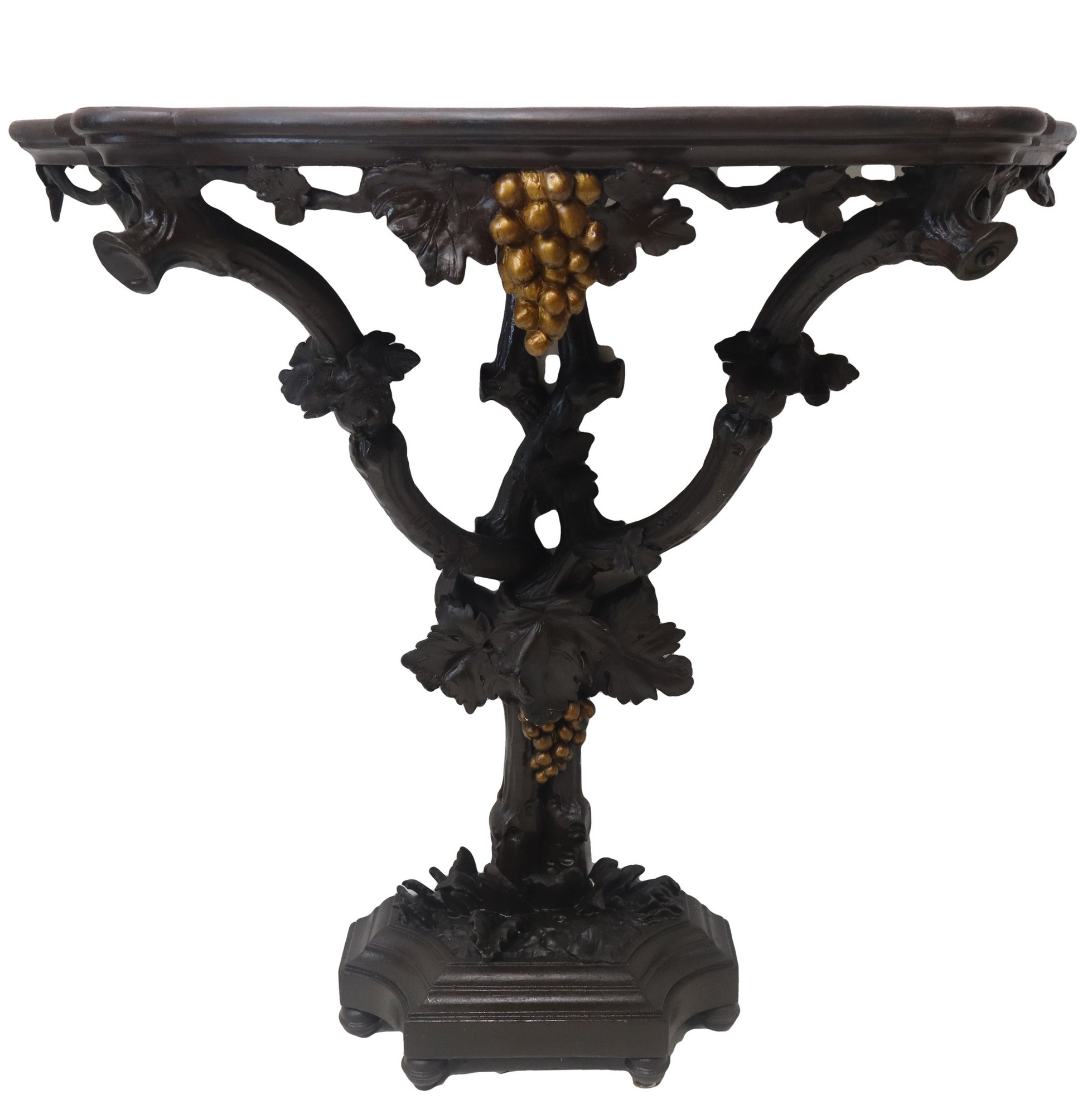 Console in legno intagliato a foglie di vite., Venice, Fine 19° Secolo H cm 100 x L cm 107 x P cm 48 Parti dorate, piano laccato in finto marmo. Presenti rotture ed incollatureParti dorate, piano laccato in finto marmo. Presenti rotture ed incollature