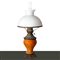 Coppia di lumi a petrolio con disegni floreali , 19° Secolo H cm 53 Paralume in opaline bianca,piede in metallo e base in maiolica.Paralume in opaline bianca,piede in metallo e base in maiolica.