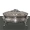 Portagioie in argento a motivi floreali g 472 Sbalzato e bulinato, presa a coperchio. Punzone 800 alla base e Leone passante alato.Sbalzato e bulinato, presa a coperchio. Punzone 800 alla base e Leone passante alato.