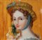 Gruppo di tre dipinti su vetro raffiuranti figure femminili: L'amabilitè, Cara, Cerere. cm 32 x 26