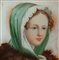 Gruppo di tre dipinti su vetro raffiuranti figure femminili: L'amabilitè, Cara, Cerere.