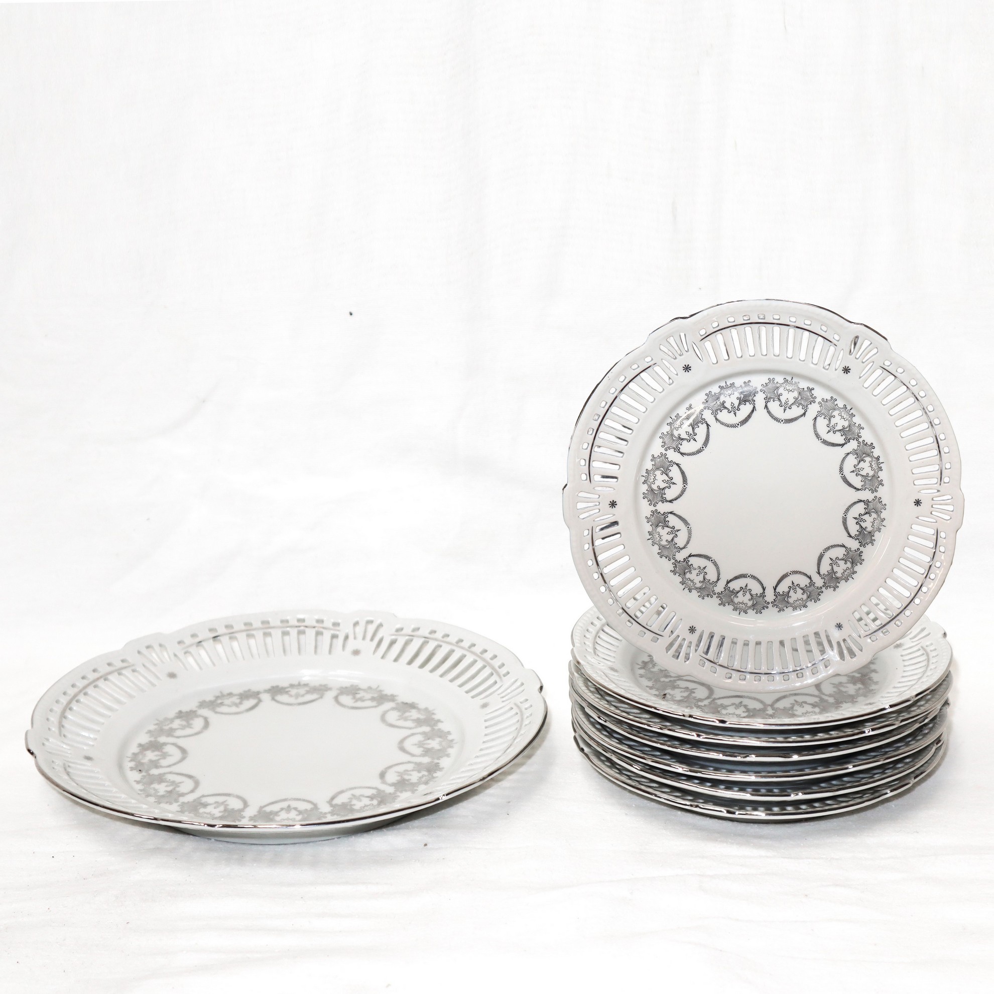 Bavaria Schwarzenhammer - Servizio da dolce con decorazioni color argento Composto da 6 piattini da dolce, 1 piatto da portataComposto da 6 piattini da dolce, 1 piatto da portata