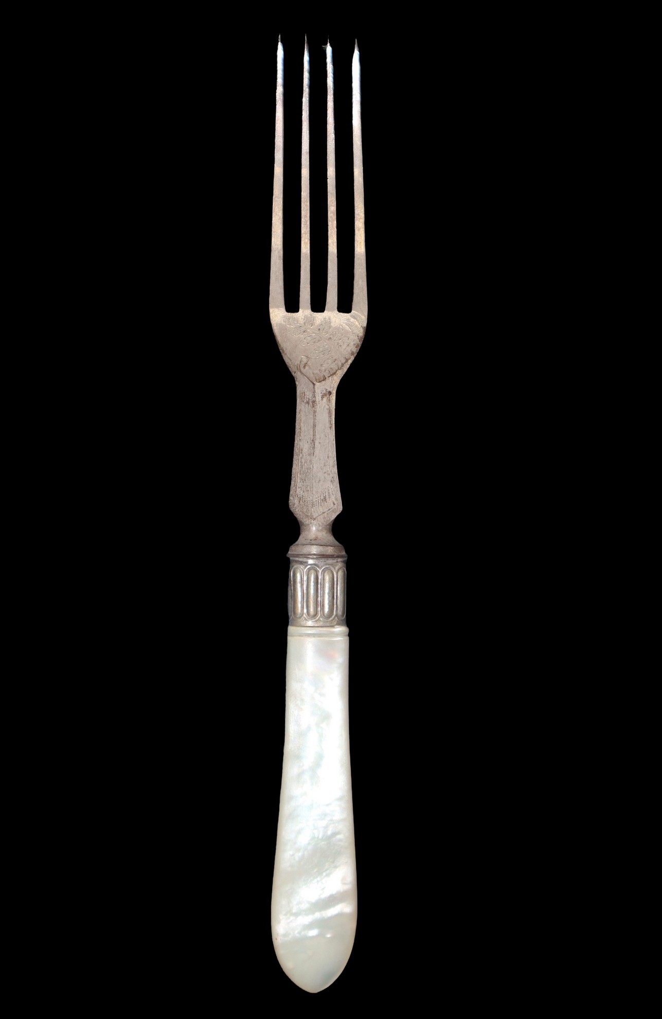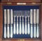 Servizio da frutta silverplated, con manico in madreperla entro scatola di mogano, Primi 20° Secolo