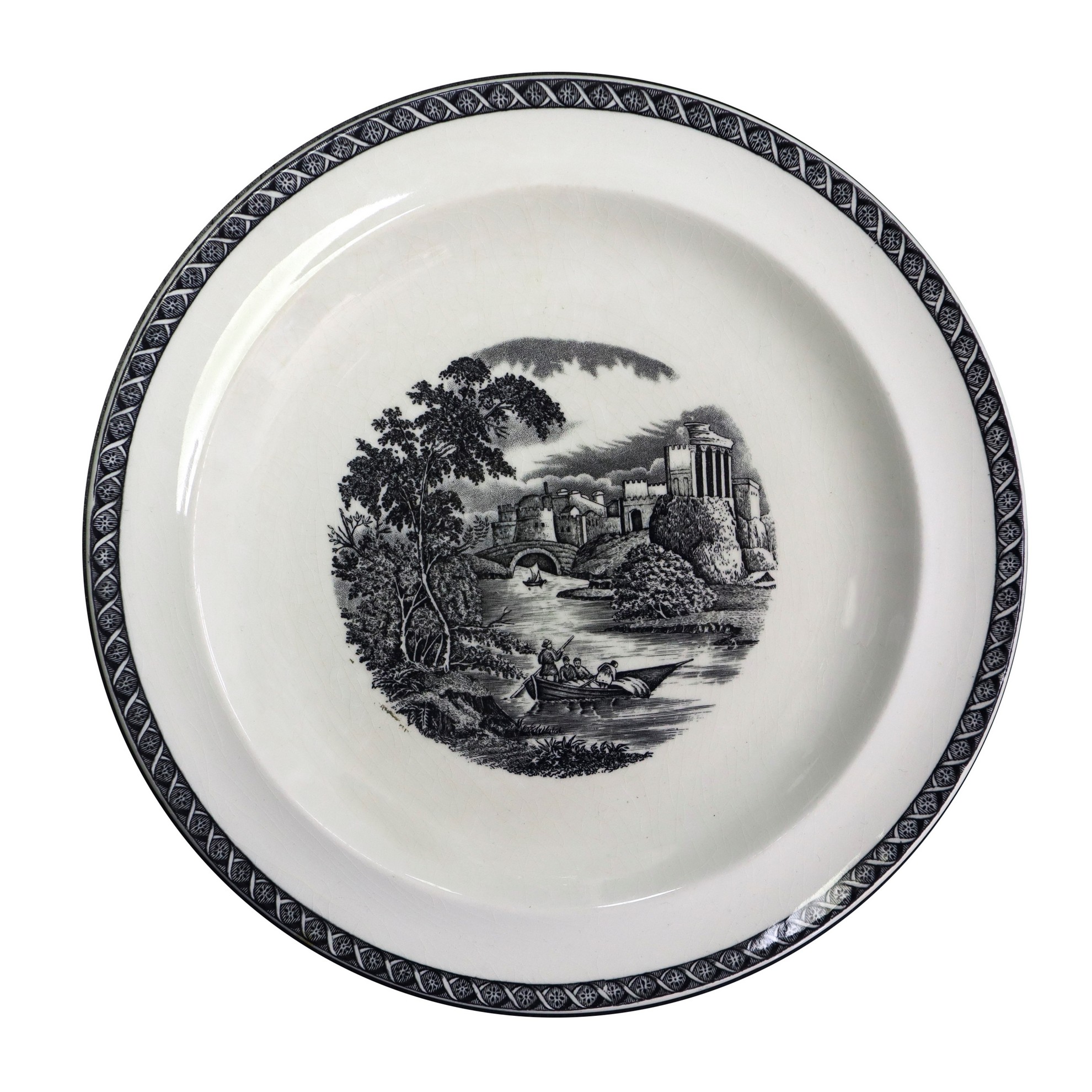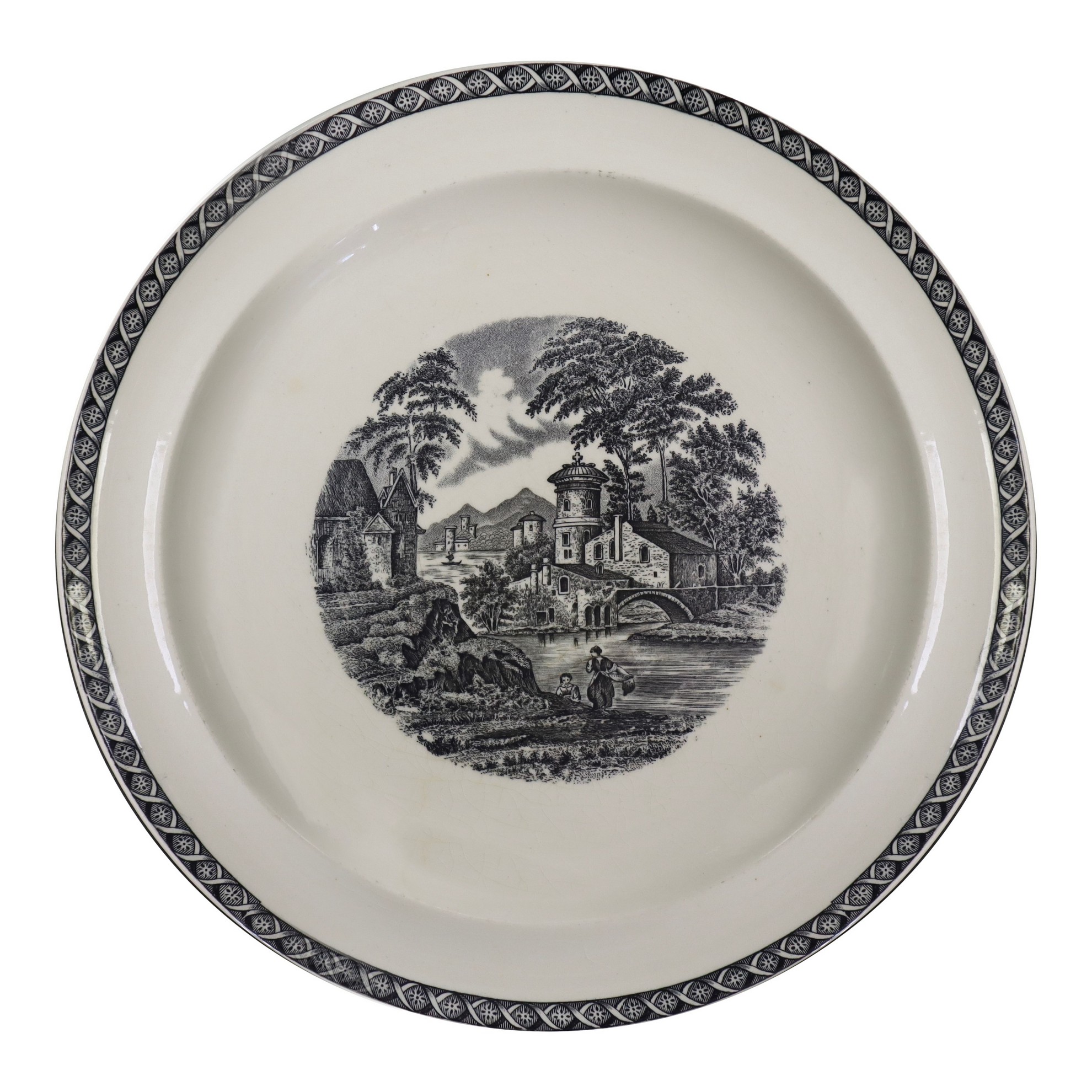 Con decoro centrale di paesaggi con castelli.