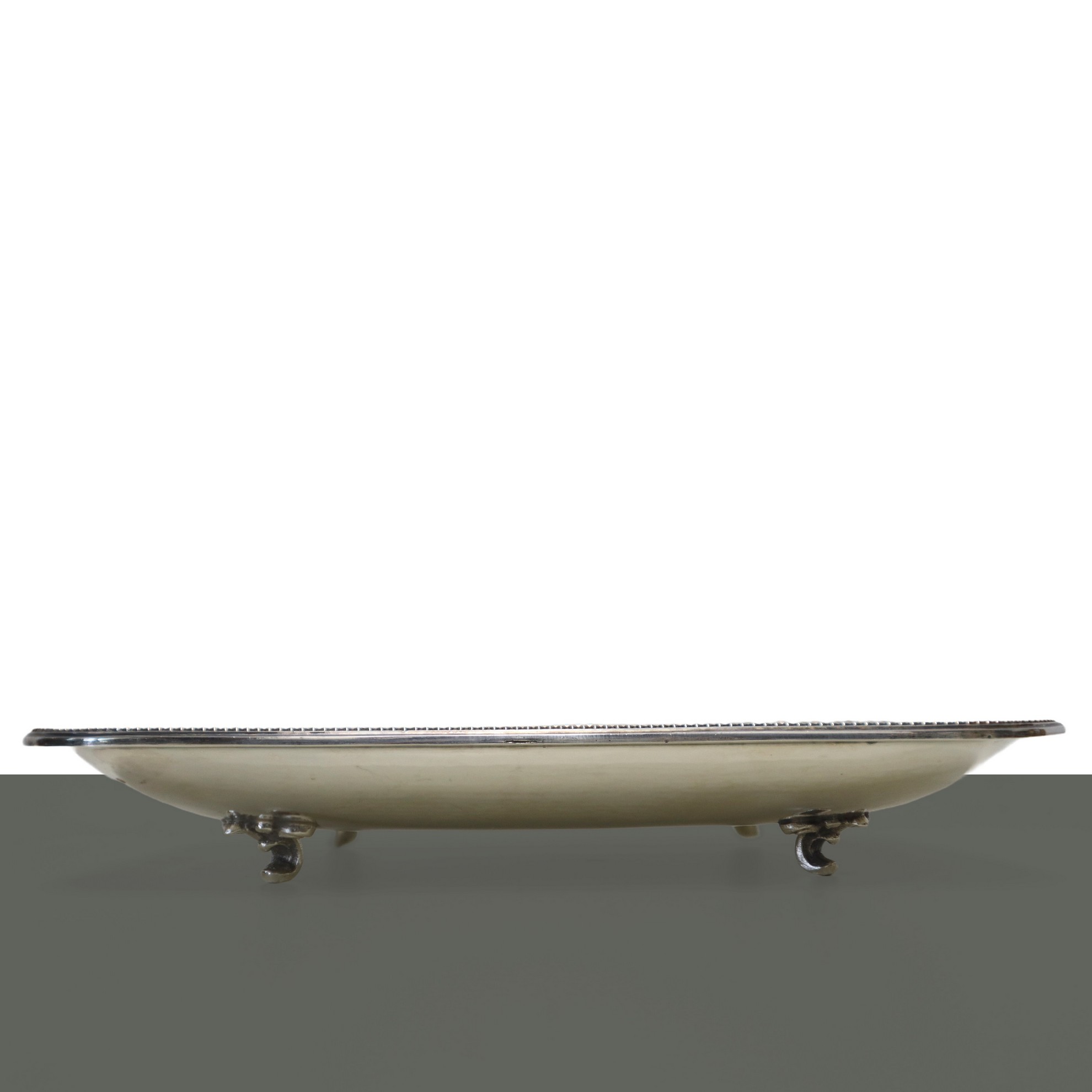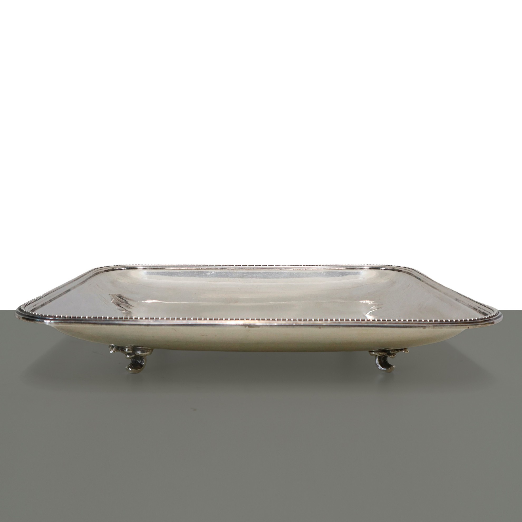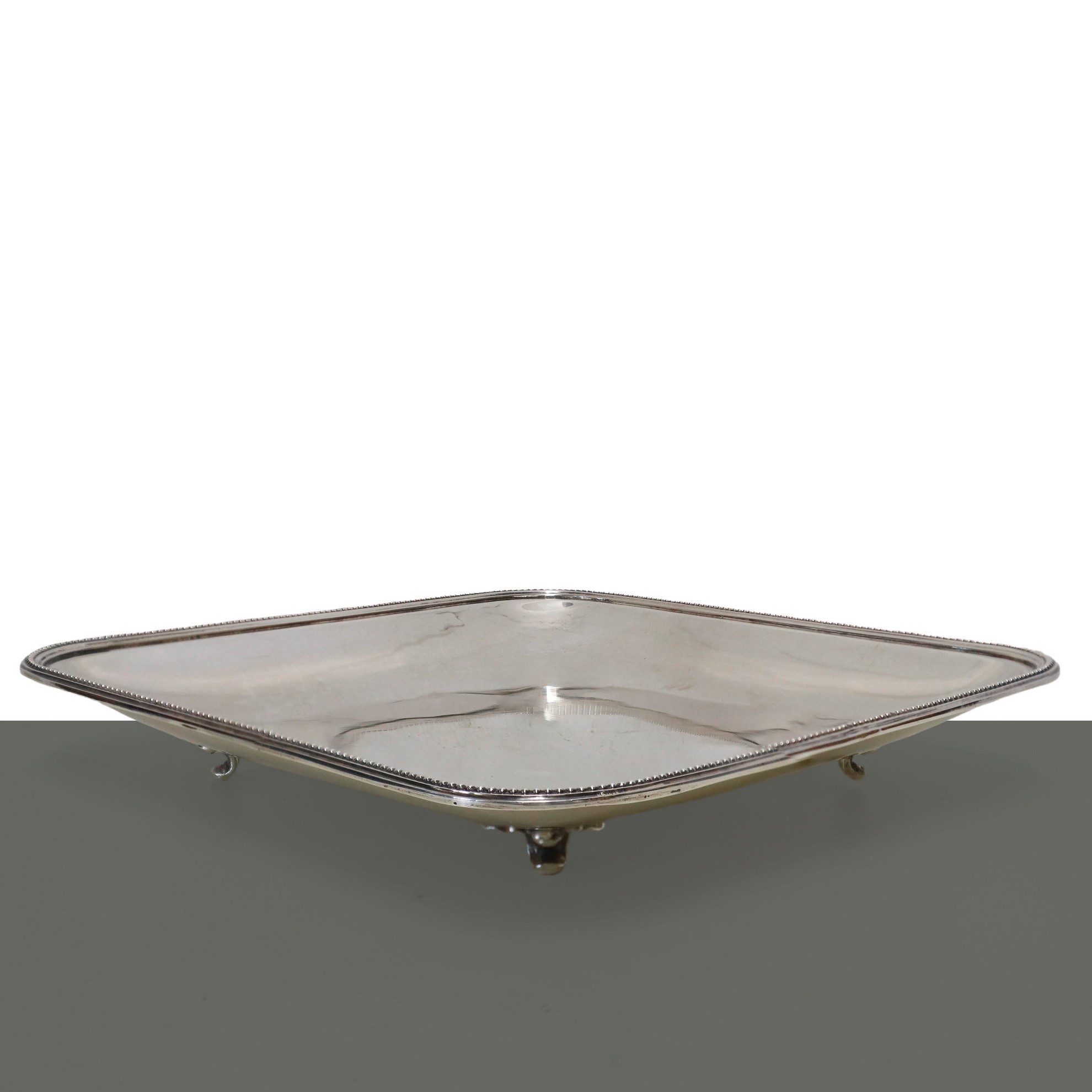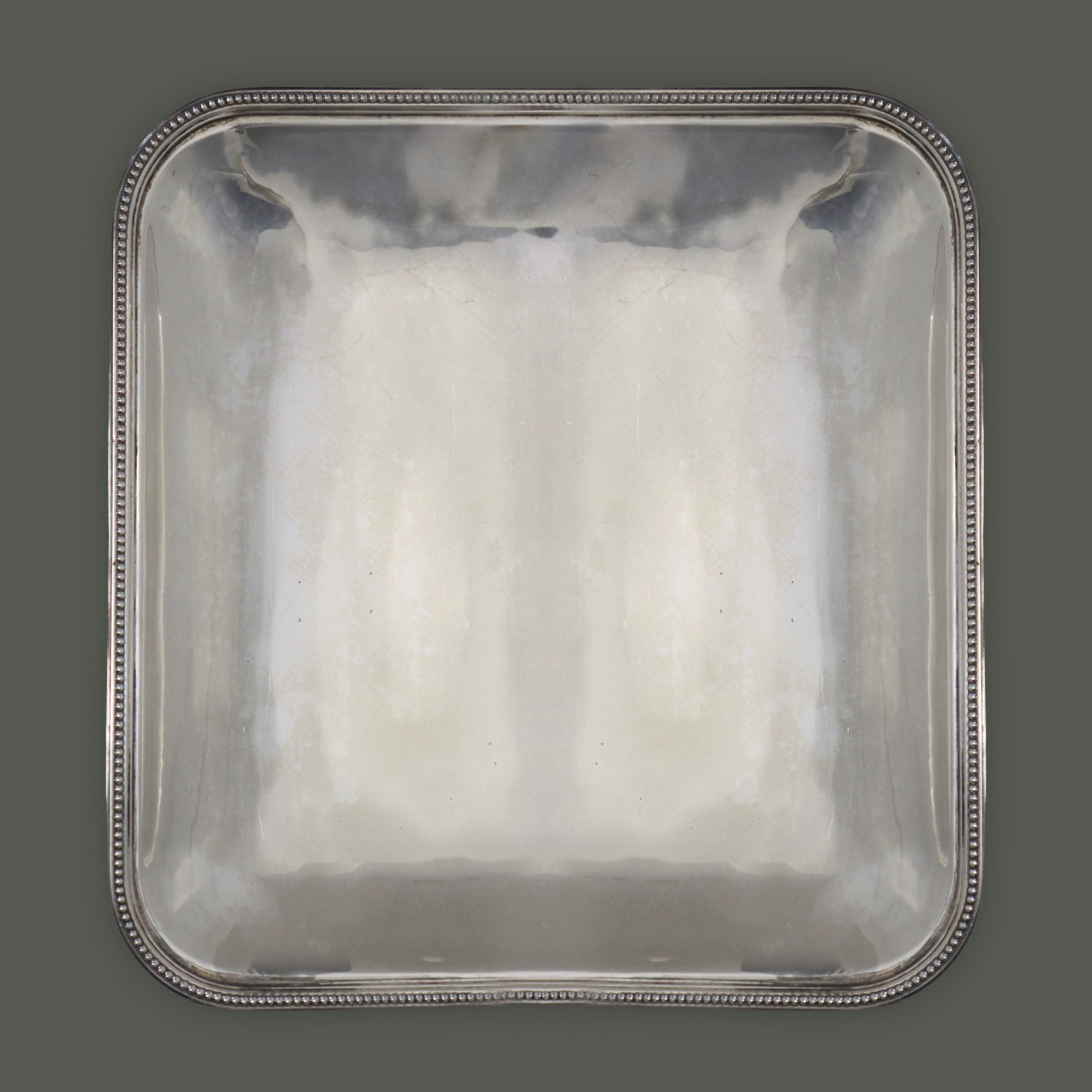 Vassoietto quadrato, 20° Secolo g 404 / h cm 3 / Base cm 21.5 x 21.5 Punzone A.L (Alessandria), Bordo paglinato.Punzone A.L (Alessandria), Bordo paglinato.