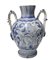 Vaso biansato in maiolica h cm 40 x cm 33 Fondo bianco decorato blu con centauro e amorino sul fronte (Napoli, XVIII secolo, attribuito ad Andrea Vaccari)Fondo bianco decorato blu con centauro e amorino sul fronte (Napoli, XVIII secolo, attribuito ad Andrea Vaccari)