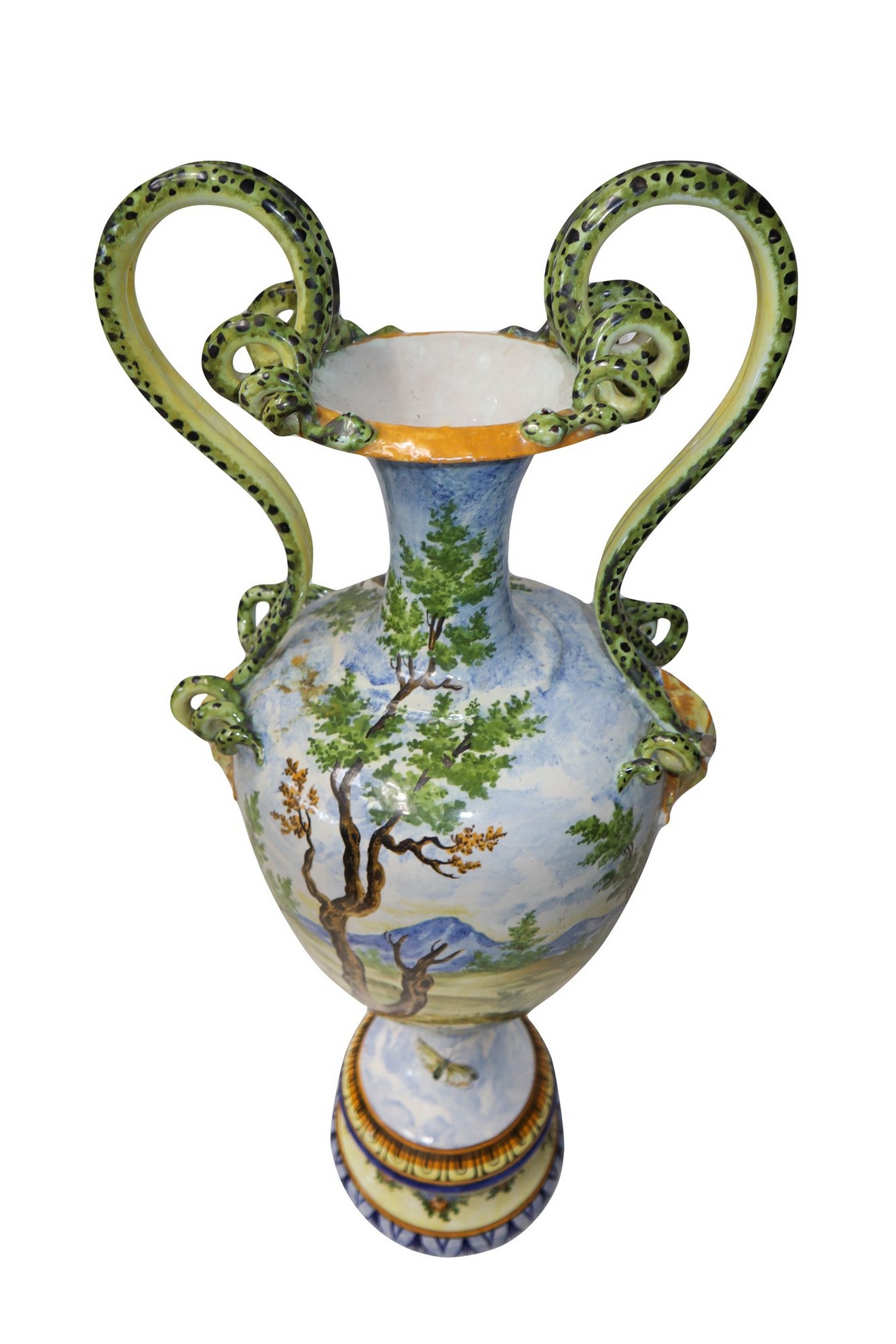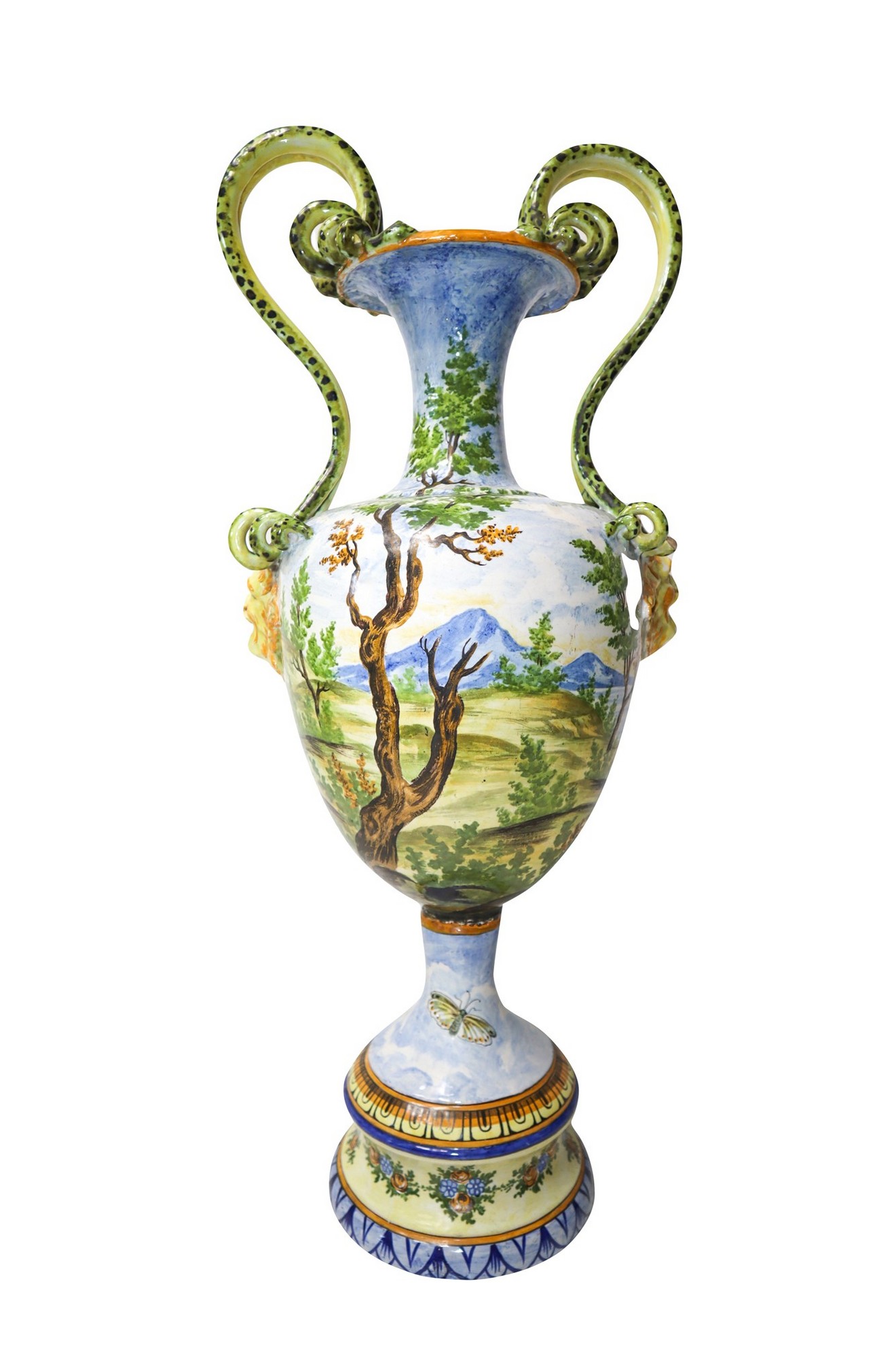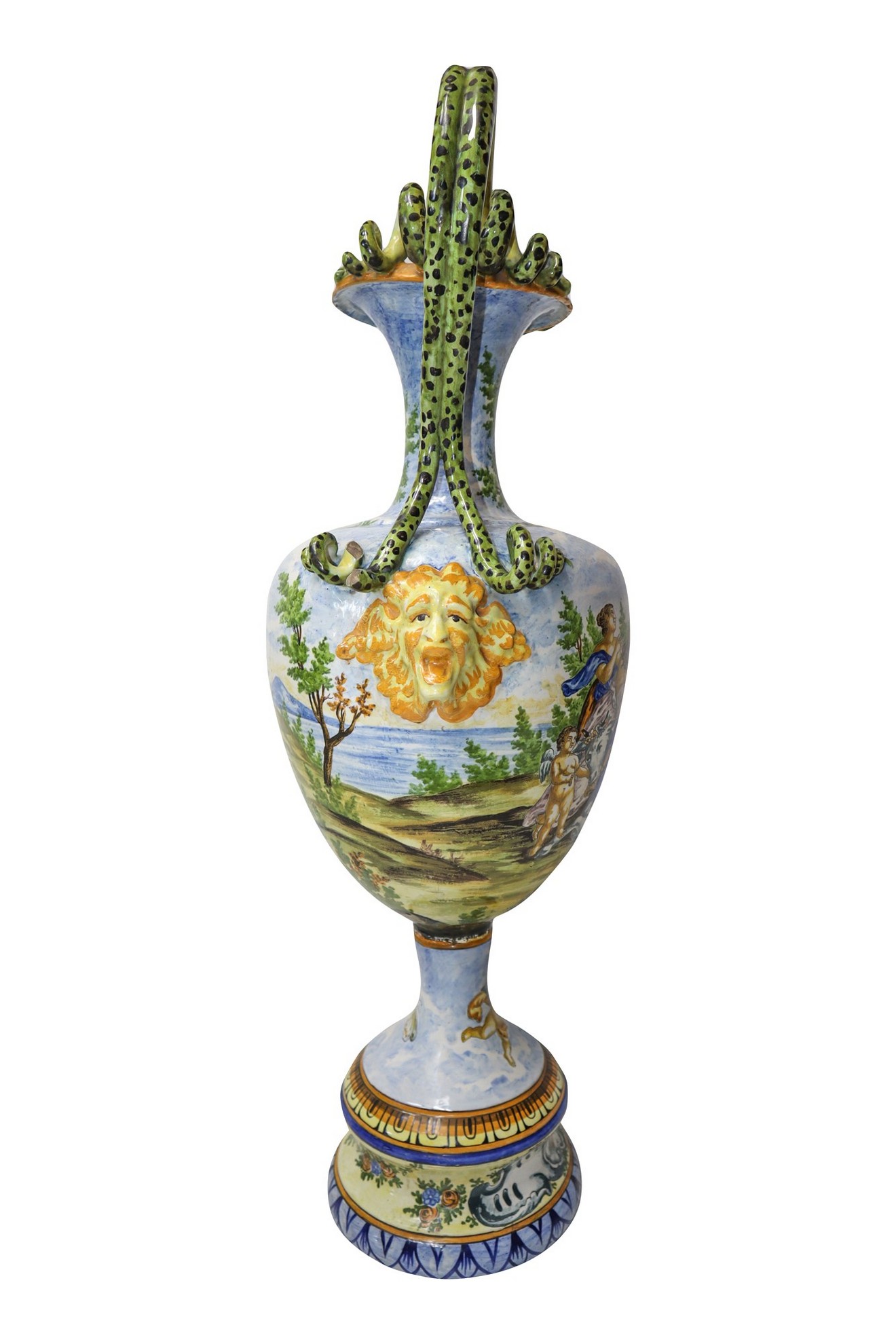 Molaroni Ceramiche Artistiche - Grande vaso in maiolica, 20° Secolo H cm 86 Dipinto a mano, raffigurante scena mitologica ''Ratto di Europa''.Dipinto a mano, raffigurante scena mitologica ''Ratto di Europa''.