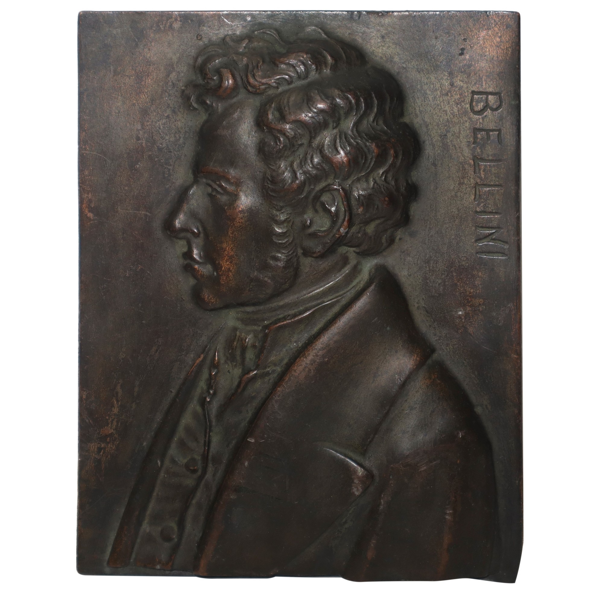 Bassorilievo in bronzo raffigurante Vincenzo Bellini, 19° Secolo