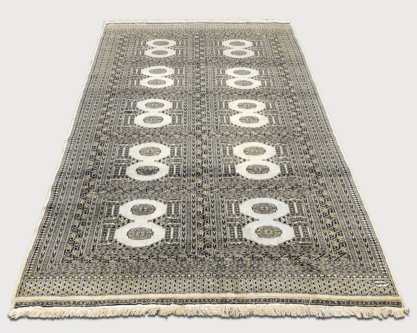 TAPPETO BUKARA KASHMIR - BUKARA KASHMIR RUG fondo nei toni del verde e nero, campo a motivo geometrico cm 275x195