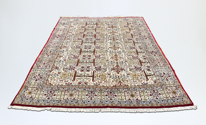TAPPETO CAUCASICO - CAUCASIAN RUG fondo panna, campo con motivi geometrici cm 240x305