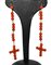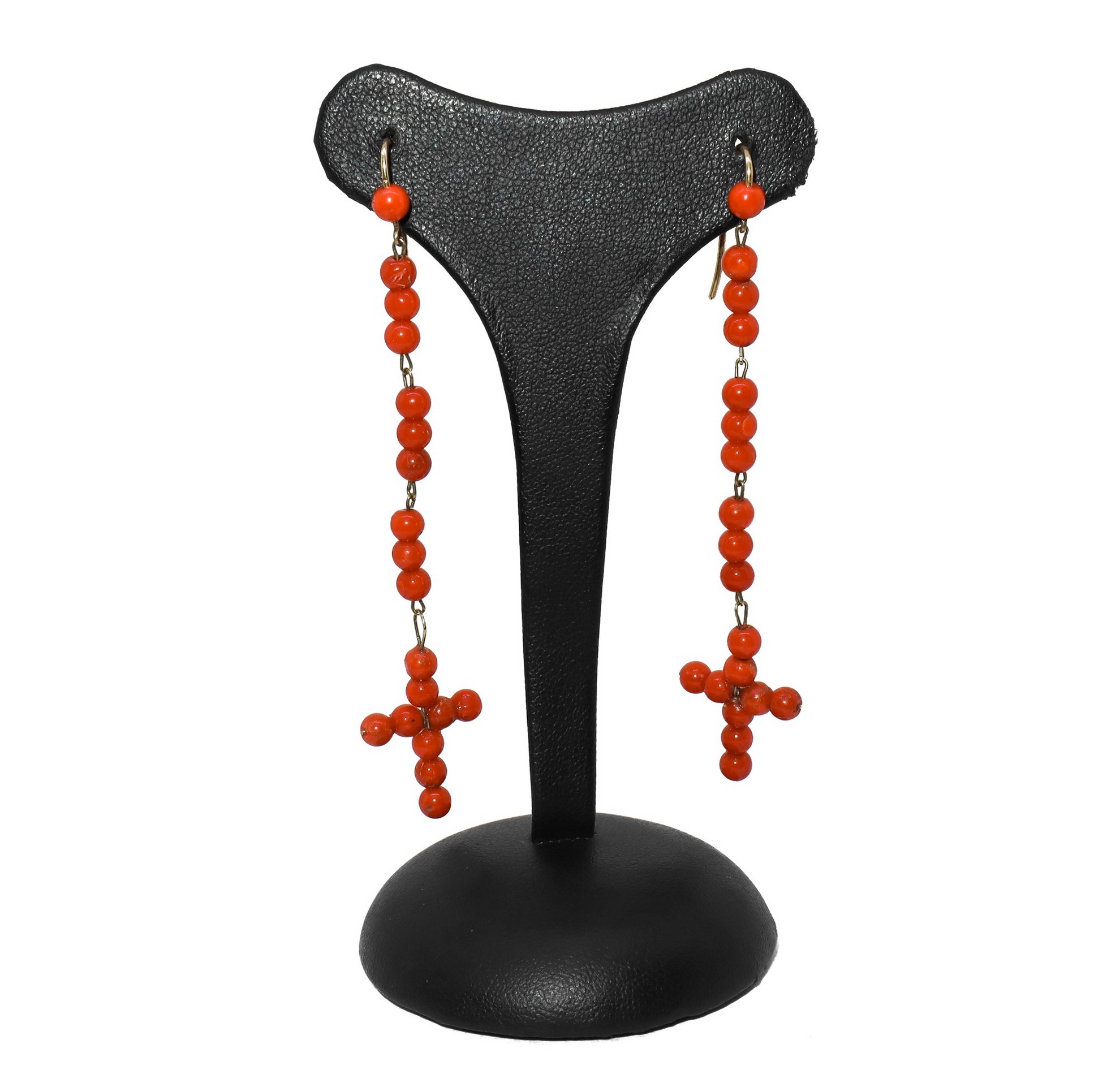 Orecchini pendenti in oro basso titolo e corallo, con croce finale