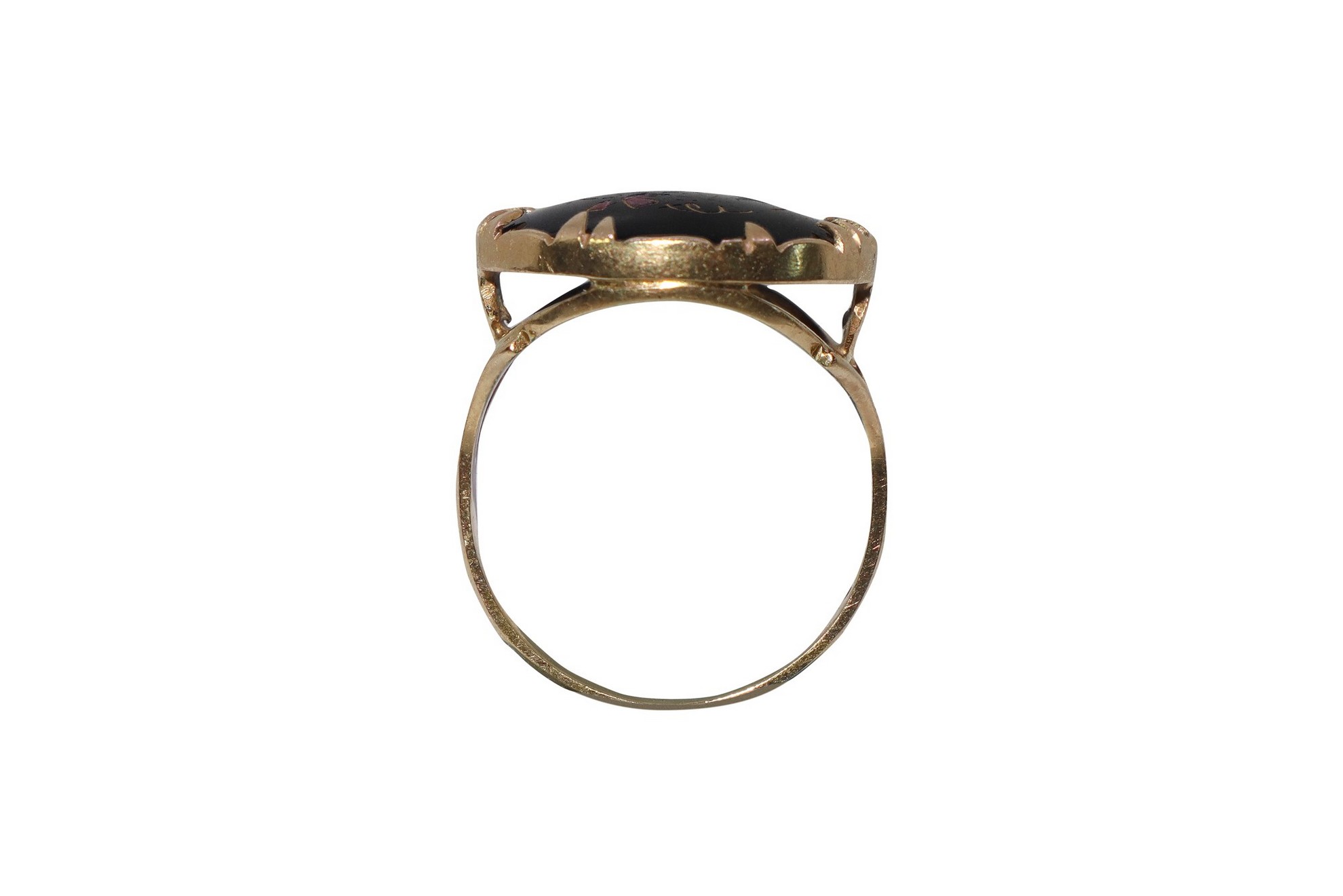 Anello in oro giallo 18 kt ,onice ed intarsi floreali in pietre dure Gr. 5.2