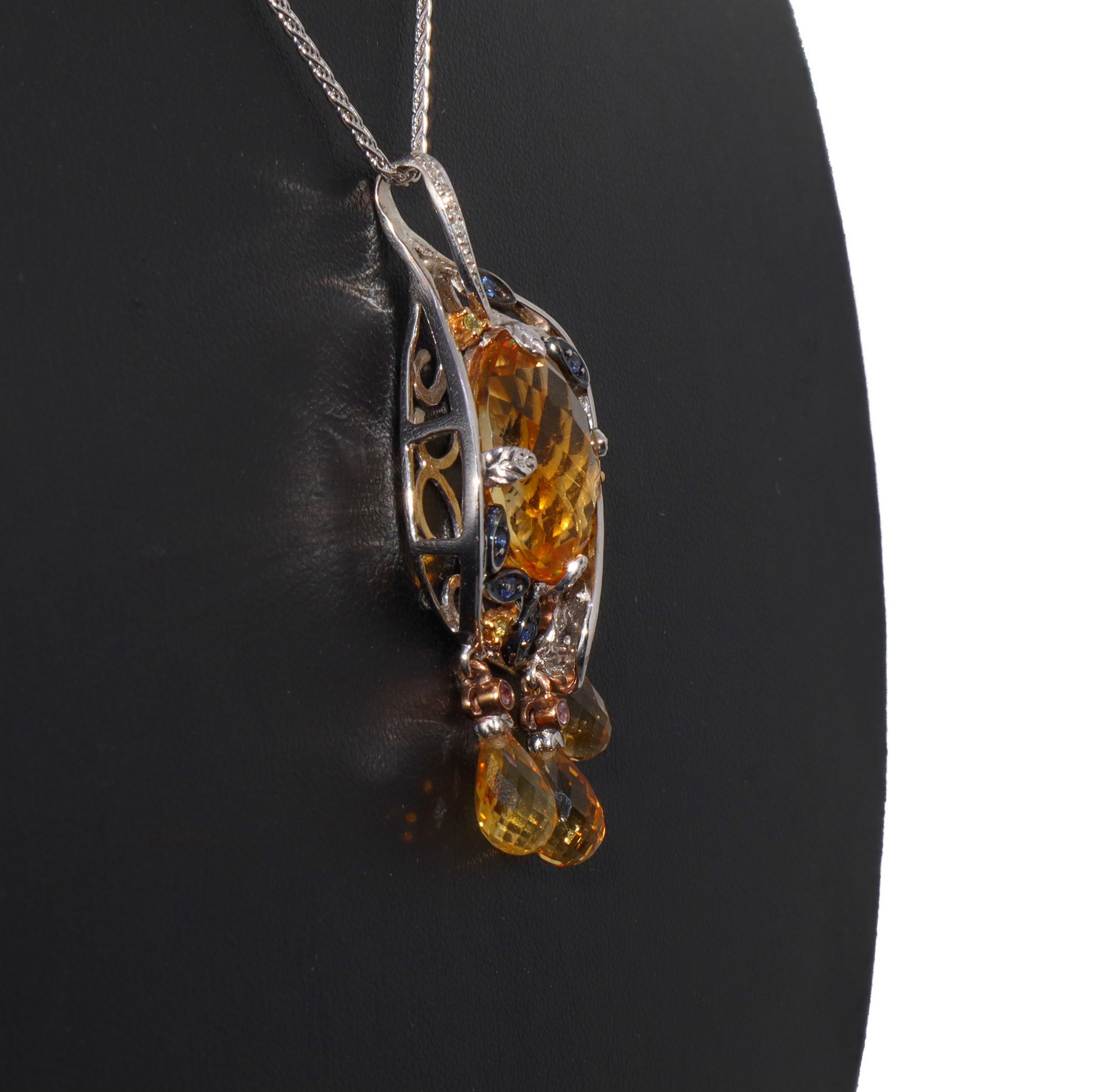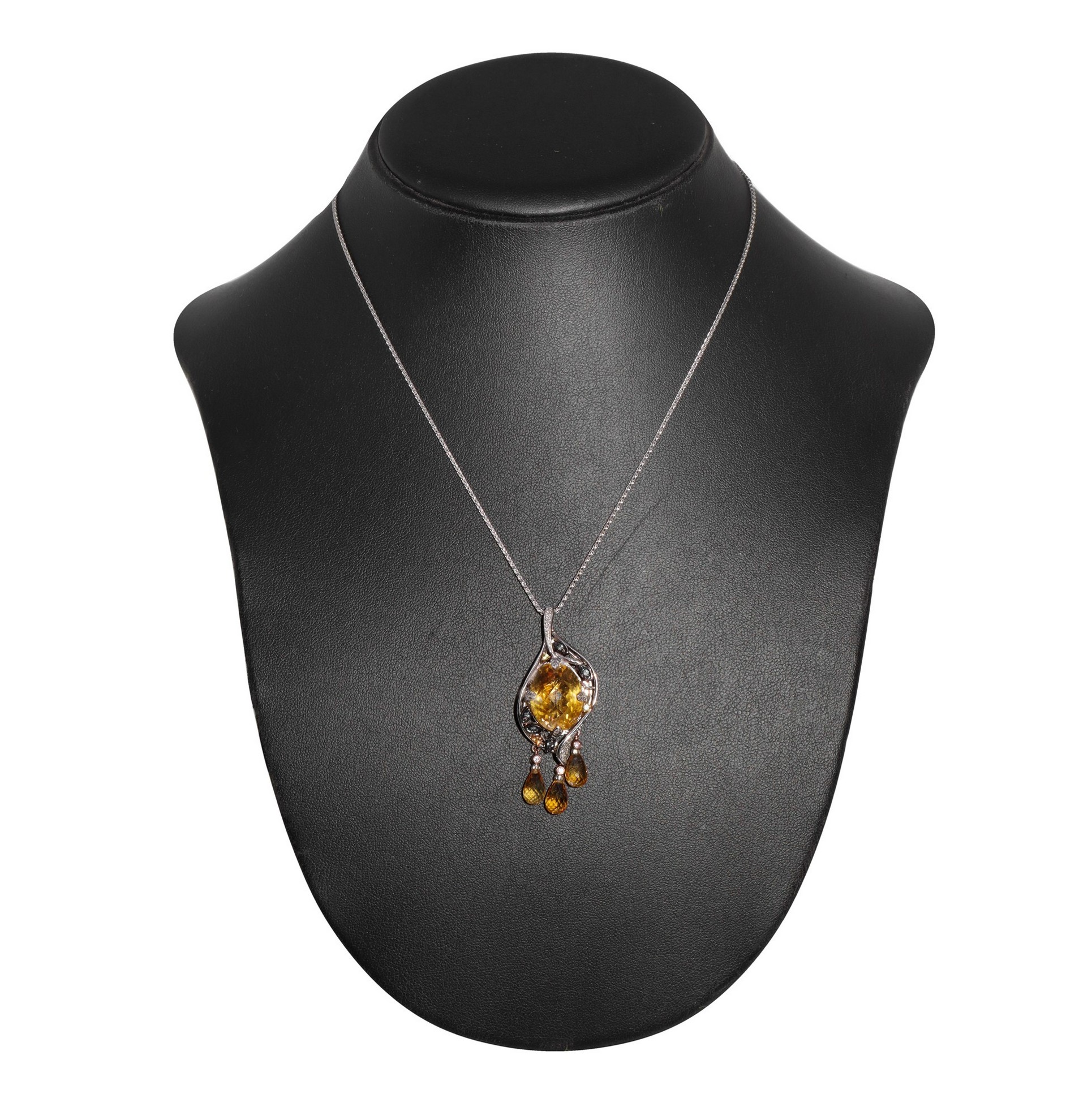 Pendentif in oro bianco con quarzo giallo sfaccettato Brillantini e pendenti a goccia in quarzo giallo sfaccettato.Brillantini e pendenti a goccia in quarzo giallo sfaccettato.
