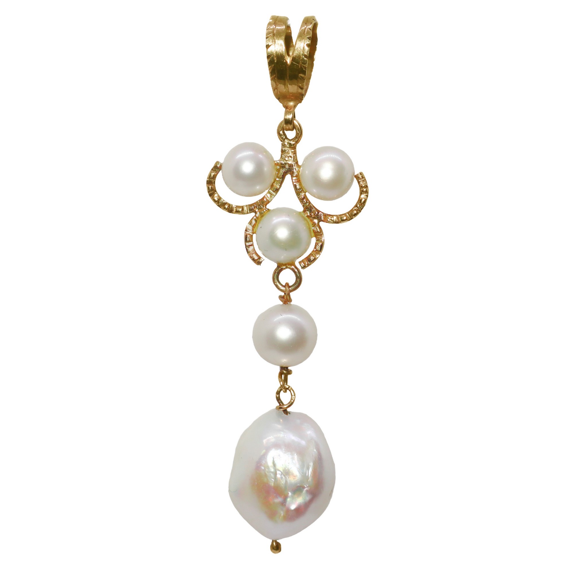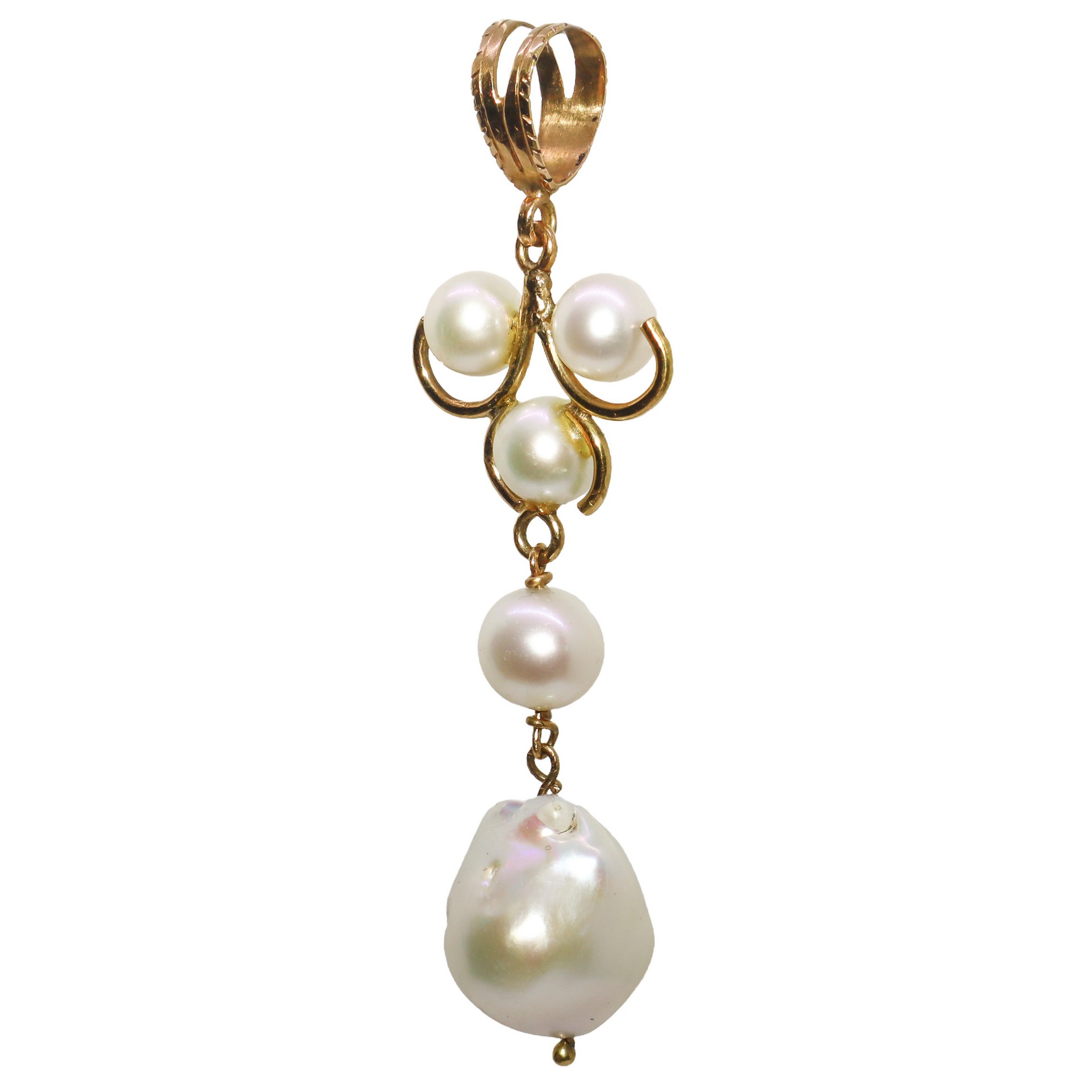 Ciondolo in oro 18 kt con perle di fiume e coltivate