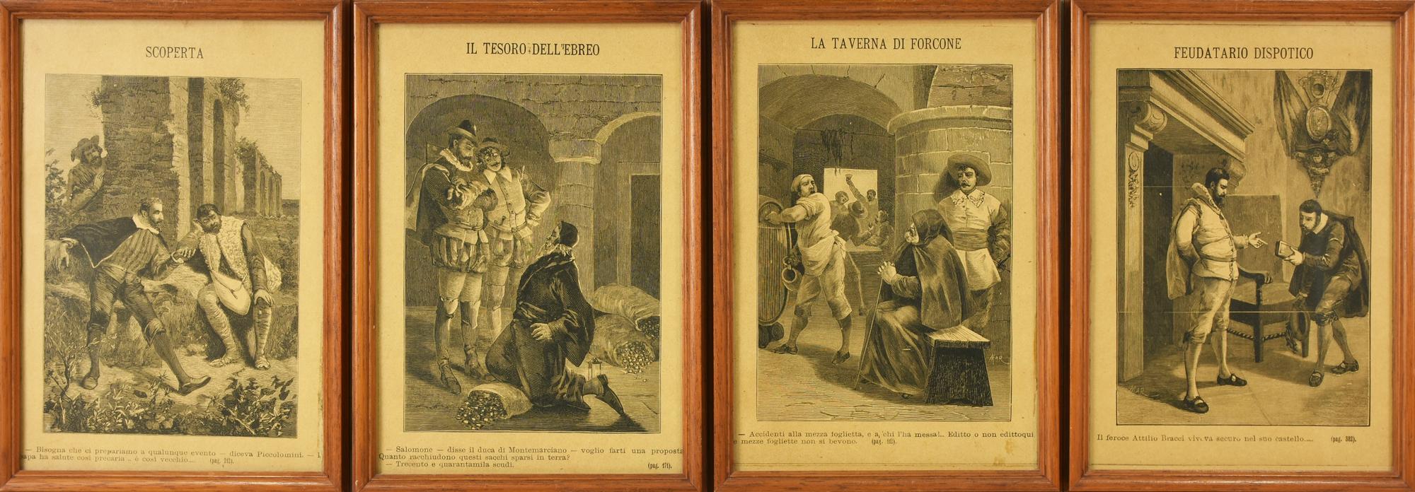 LOTTO DI 4 STAMPE da libro antico, cm 25x16 ciascuna - FEUDATARIUO DISPOTICO...