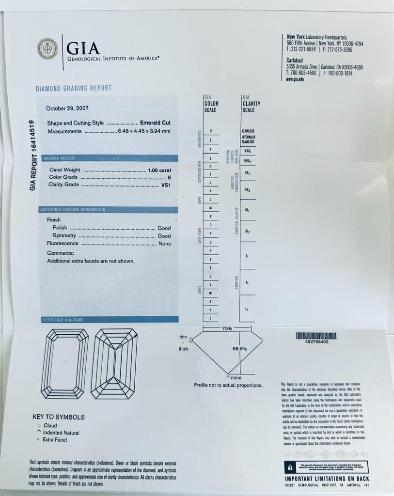 DIAMANTE 1 CT COLORE E - PUREZZA VS1 - TAGLIO SMERALDO - CERTIFICATO GIA - DH30106