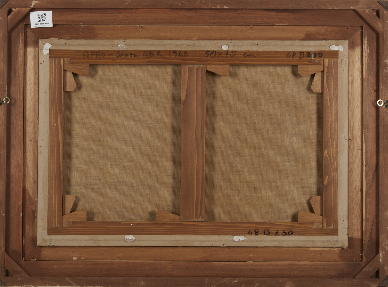 BASALDELLA AFRO (1912 - 1976) Senza titolo. 1948. Tecnica mista su carta intelata. Cm 75,00 x 50,00. Firma e anno in basso a destra. Opera archiviata presso l'Archivio Afro, Roma, come da documentazione fotografica allegata all'opera riportante il relativo numero d'inventario. Lievi difetti. Cornice presente
