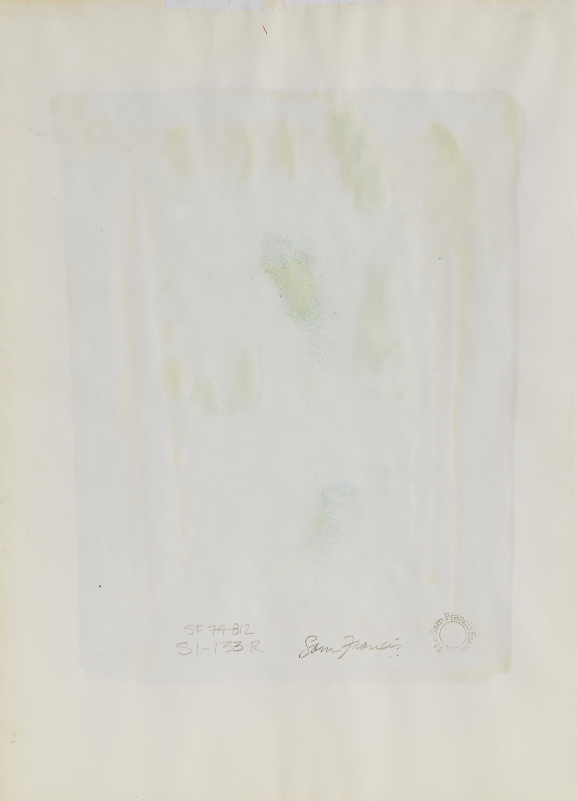 FRANCIS SAM (1923 - 1994) Senza titolo. 1970. Acrilico su carta. Cm 35,00 x 48,90. Al retro timbri della firma e The Sam Francis Estate. Opera archiviata presso la Sam Francis Foundation, Glendale, CA, come da documentazione fotografica allegata all'opera riportante il numero d'inventario SF 74-812.