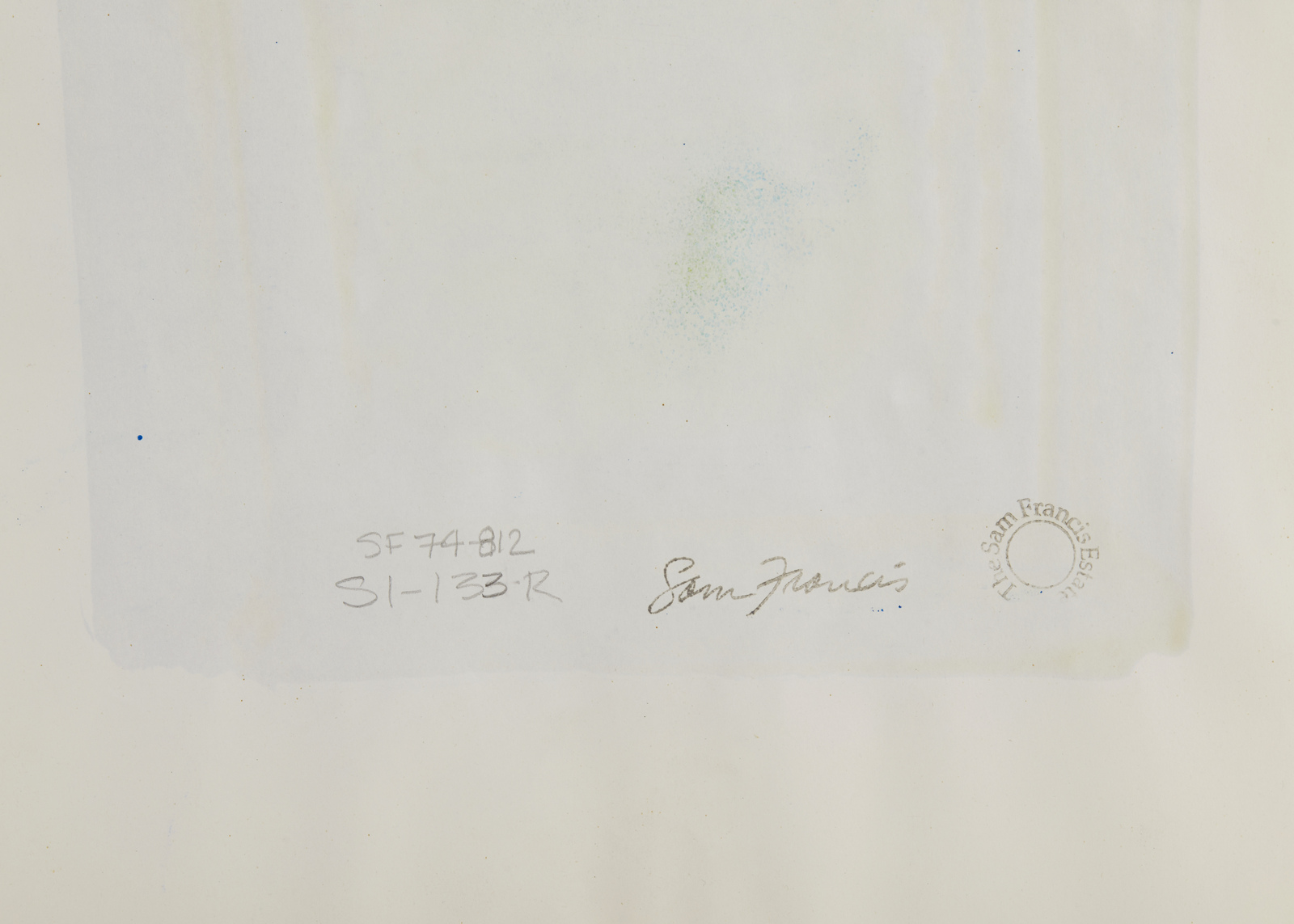 Pubblicazioni: Sam Francis, Galleria d'arte Soave (catalogo della mostra), a cura di Morelli, 1998, n. 10. Provenienza: Jonathan Novak Contemporary Art, Los Angeles, 1997; Collezione privata. Anni 70'/80'. Cornice presente