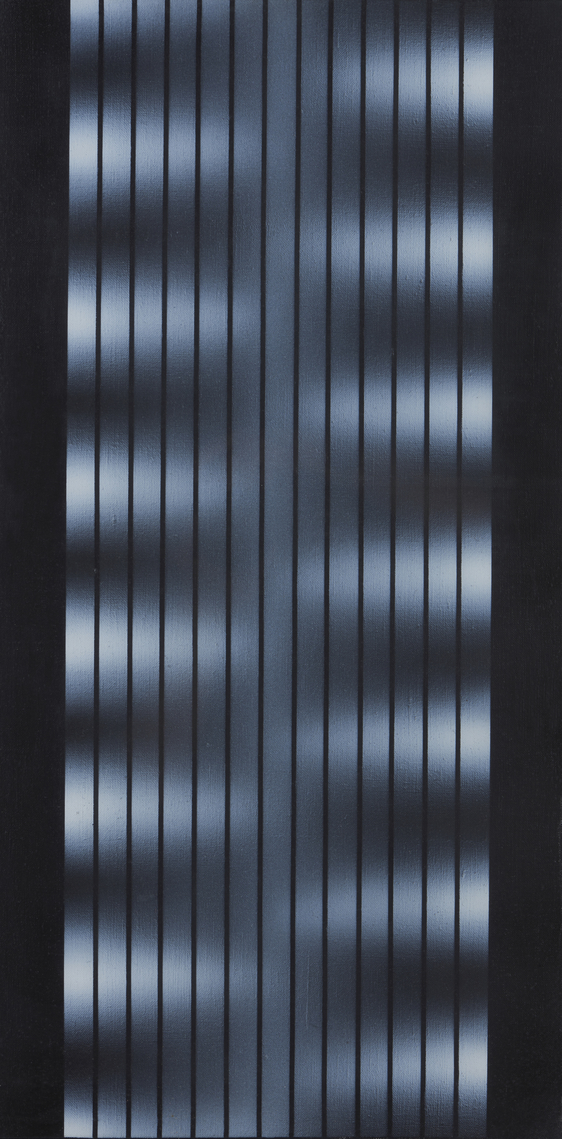 LE PARC JULIO (n. 1928) Modulation ru n.173. 1975. Olio su tela . Cm 35,00 x 70,00. Al retro titolo, firma, anno, cartiglio descrittivo con timbro Galleria L'Elefante, Treviso e timbri Galleria Serego, Verona. Autentica dell'artista su fotografia.