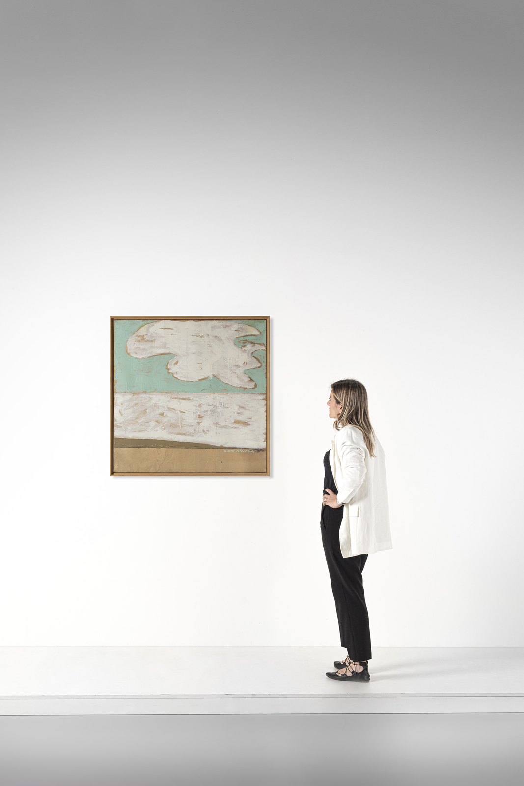 SCHIFANO MARIO (1934 - 1998) Con Anima. 1963. Smalto su carta applicata su tela. Cm 100,00 x 100,00. Titolo in basso a destra. Opera archiviata presso l'Archivio Mario Schifano - Monica Schifano, Roma, come da documentazione allegata all'opera riportante il relativo numero d'inventario. Il dipinto era conservato arrotolato e il telaio è stato realizzato successivamente. L'opera verrà pubblicata (come da cortese conferma di Monica Schifano) sul catalogo generale delle opere pittoriche degli anni'60 di Mario Schifano di prossima pubblicazione edito da Skira.