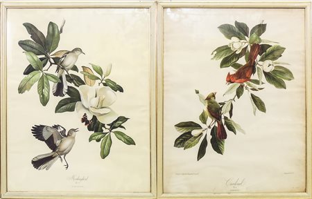 VOLATILI E FIORI - BIRDS AND FLOWERS coppia di litografie - a pair of...