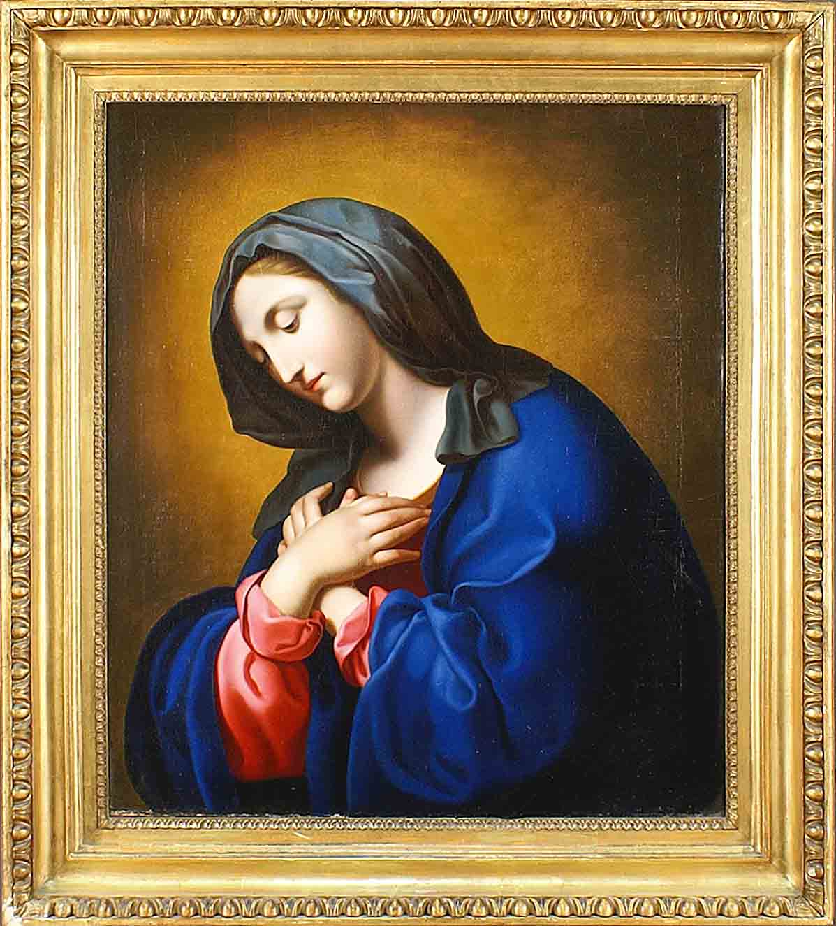 Antonio Cavallucci, attribuito a, (Sermoneta 1751 - Roma 1798), "Madonna in preghiera", olio su tela, cm. 68,5x78,5, cornice coeva in legno dorato .