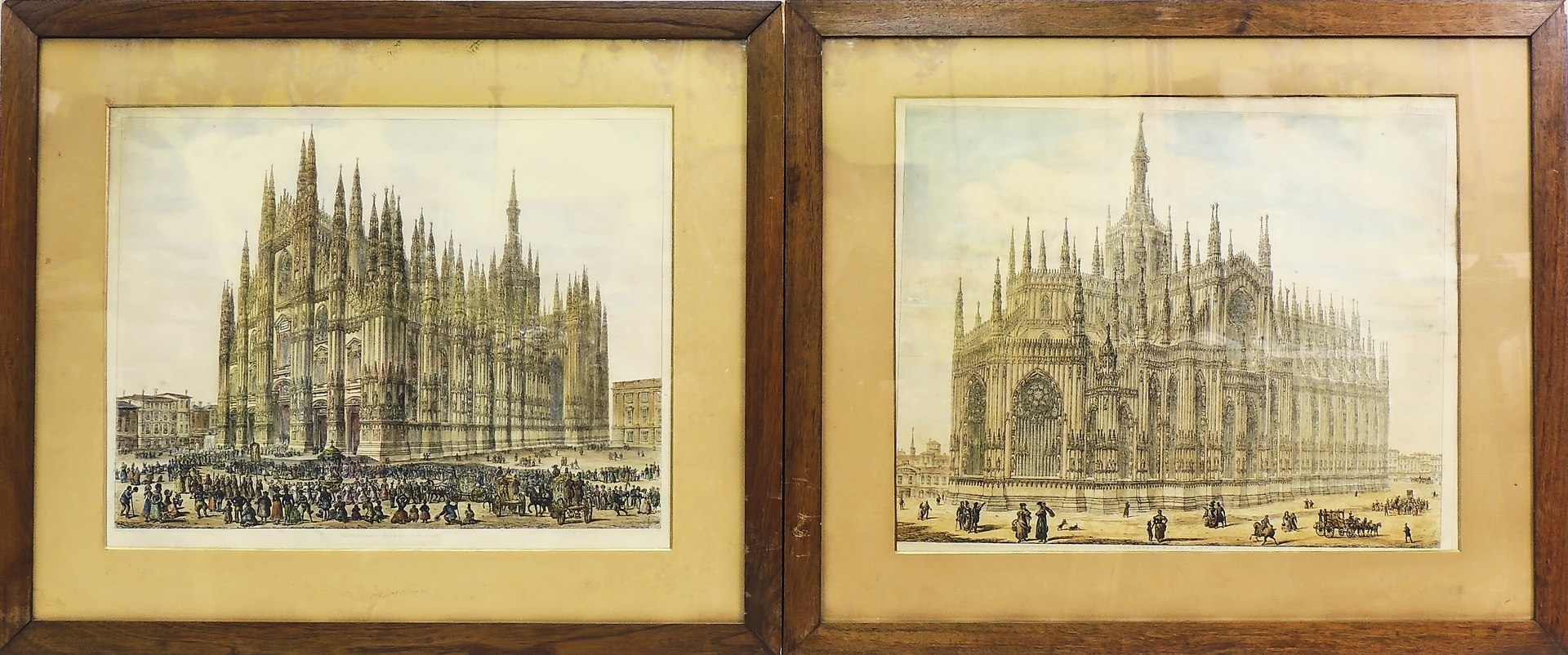 JOHN CONEY (1786-1833) Vedute del Duomo di Milano - Cathedrale of Milan Views coppia di litografie - a pair of lithographs, in cornice (2) cm 41x55