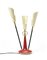 Table lamp with three lights. Milan, 1950s/1960s. Red, white and black lacquered metal, brass small parts. Manufacturer's label at the base. (h 47 cm.) (slight defects)
